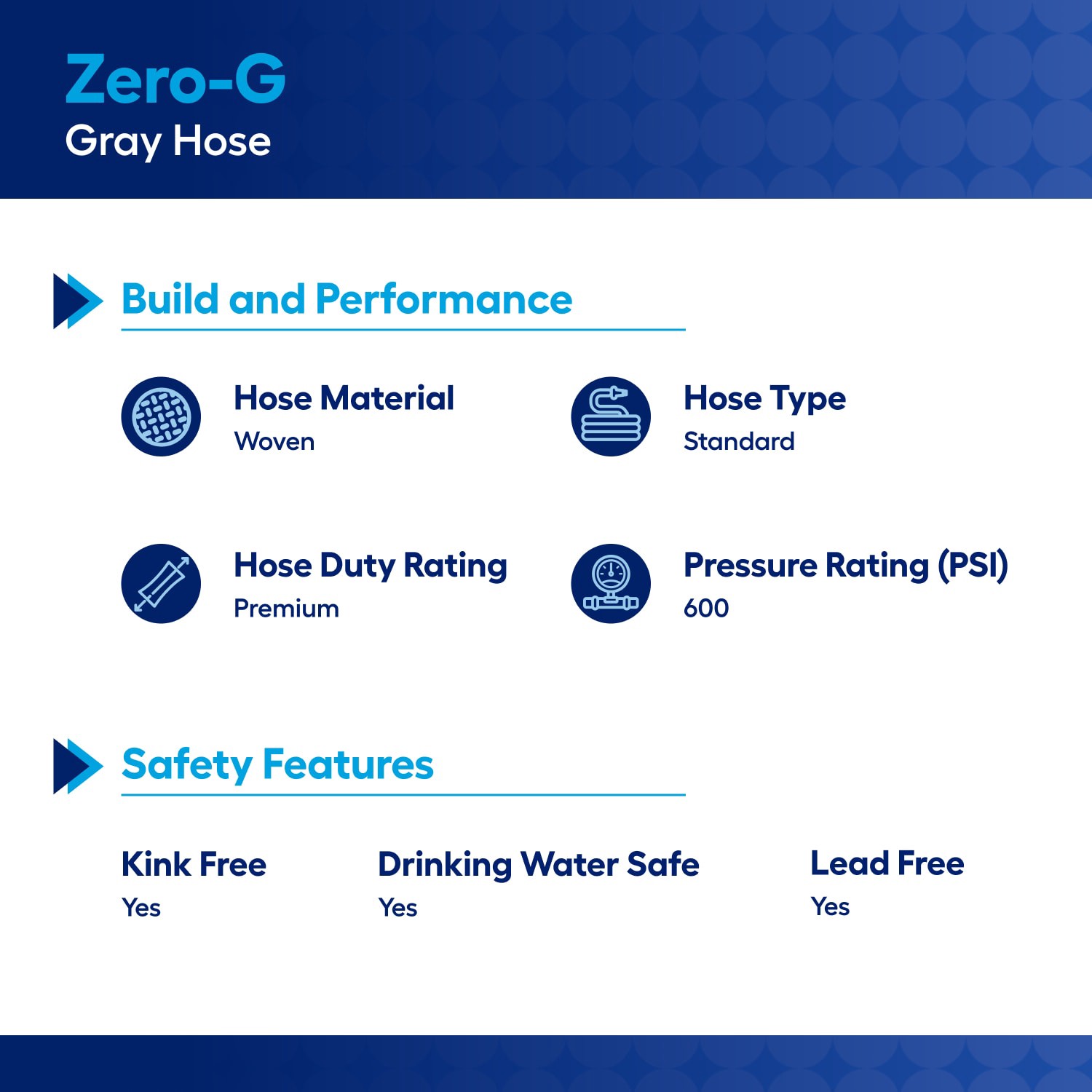 Zero-G Teknor Apex 5/8-in x 100-ft Premium -Duty Kink Free Woven Gray Hose