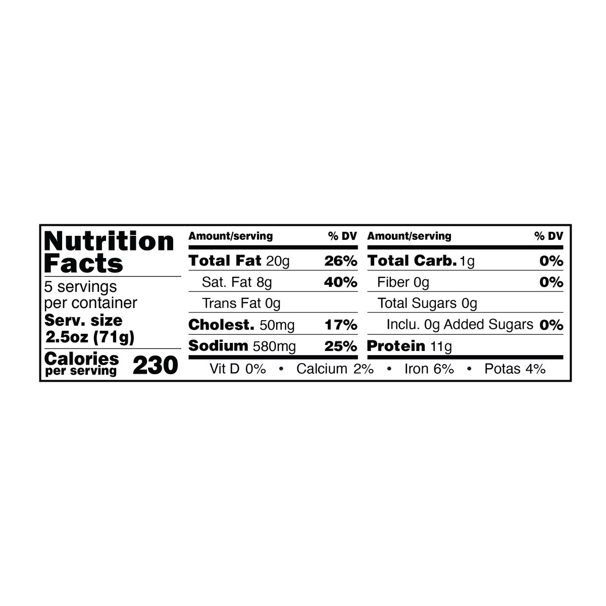 Pork, Water, Salt, Chili Powder, Vinegar, Spices, Sodium Nitrite, Garlic.