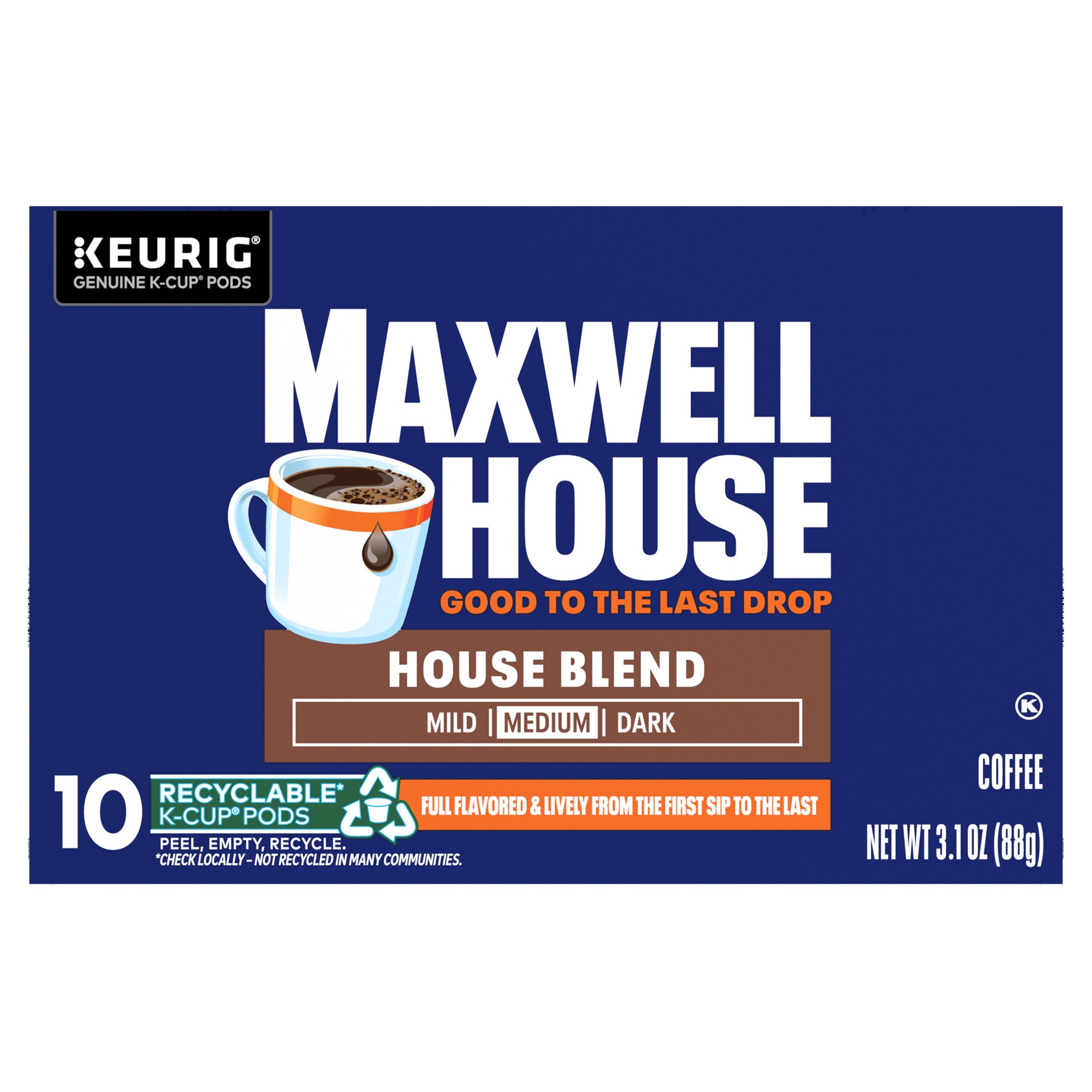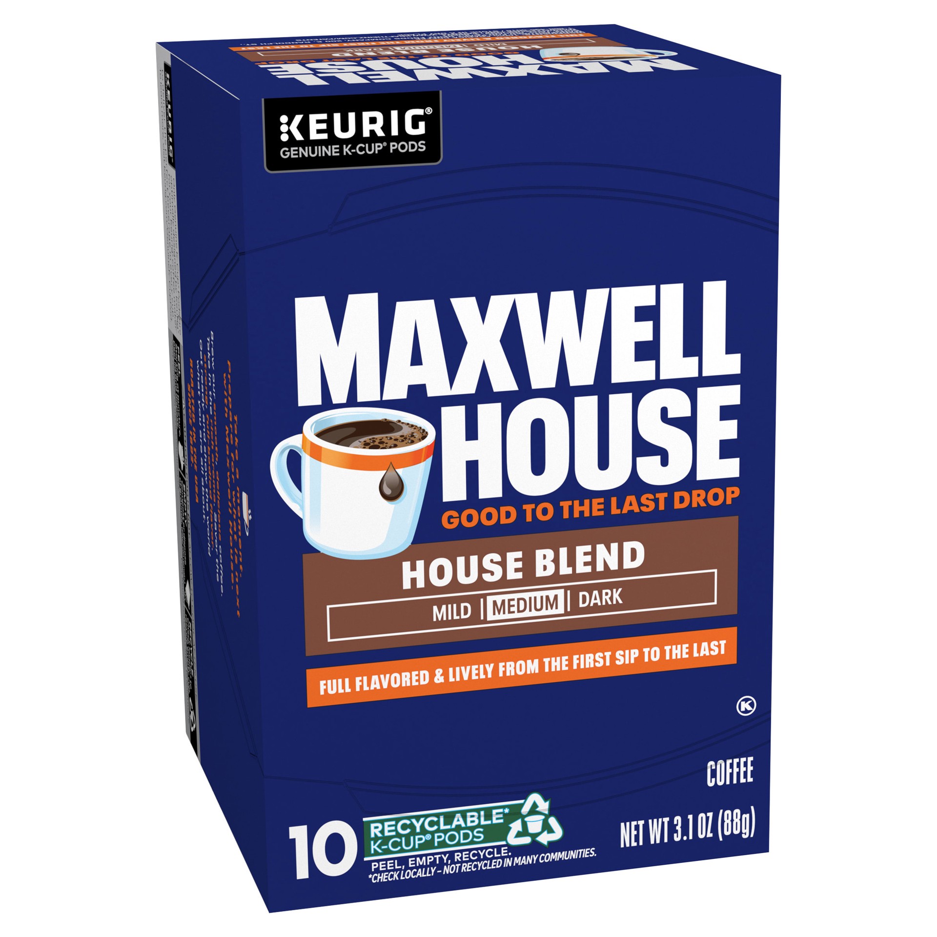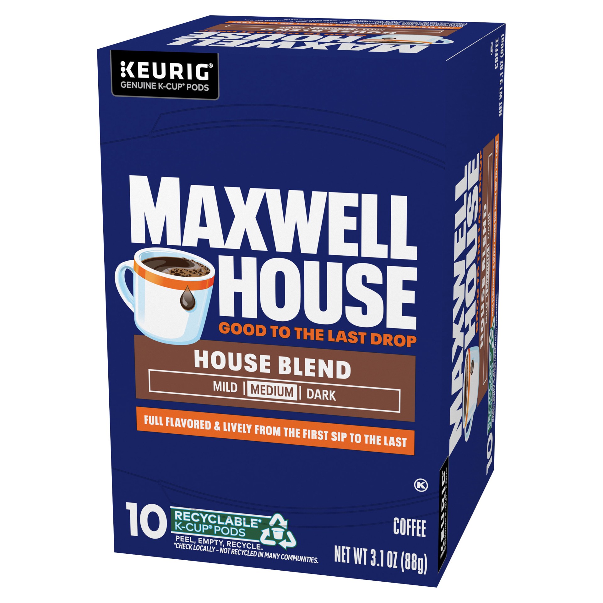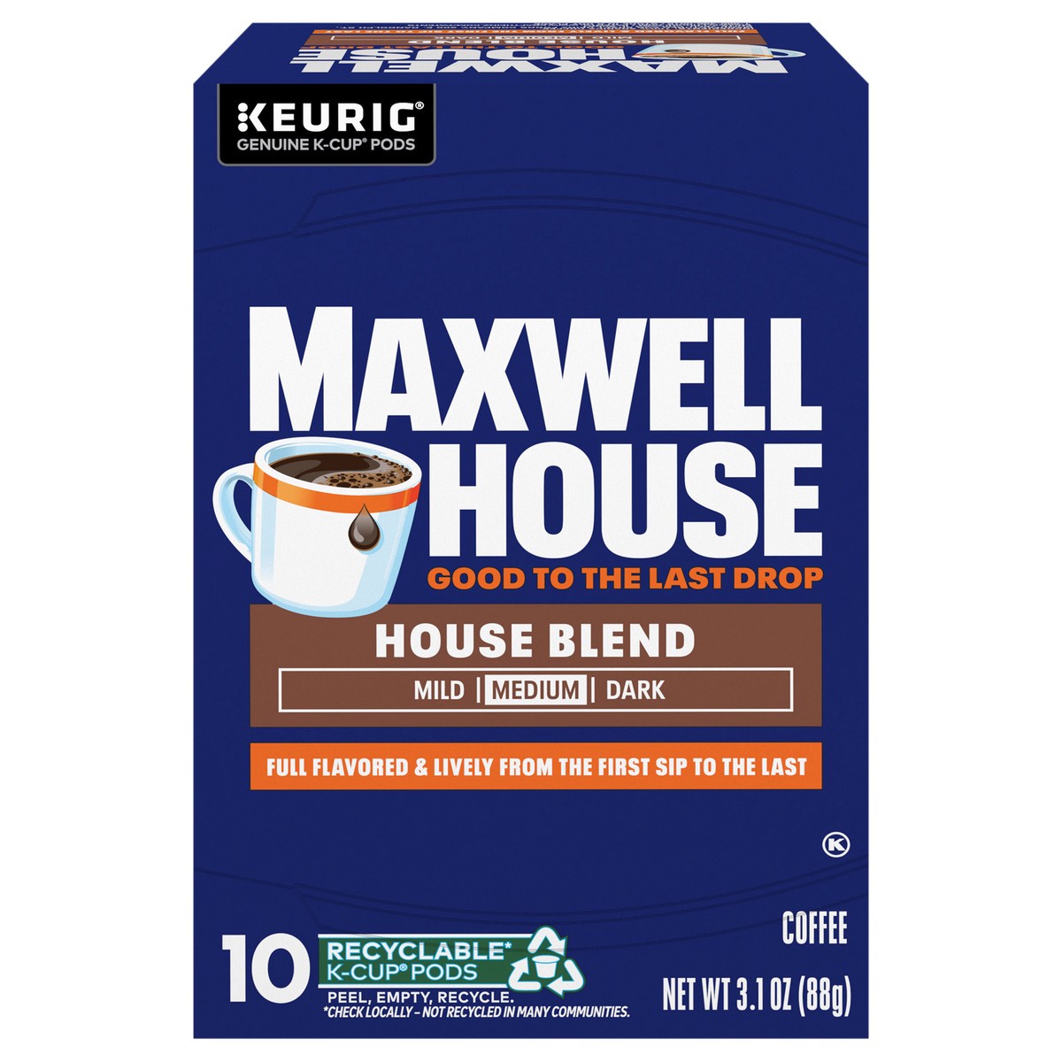- MAXWELL HOUSE COFFEE: 10 ct box of Maxwell House House Blend Medium Roast K-Cup Coffee Pods