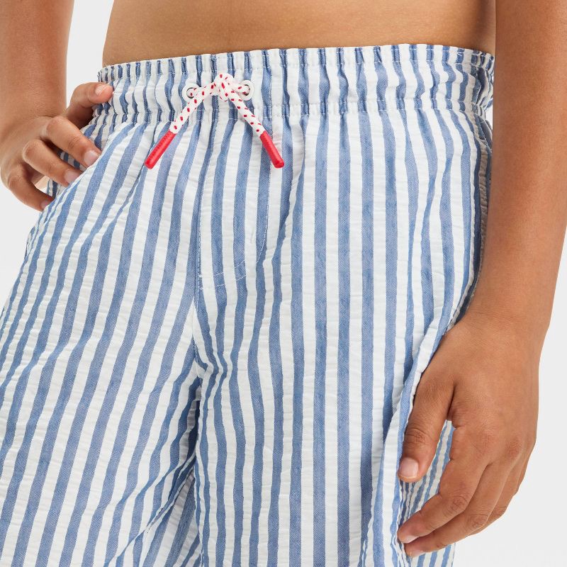 For exciting sunny adventures, these Striped Seersucker Swim Shorts from Cat & Jack™ will be your child's go-to pick. Boasting a striped seersucker pattern for a stylish look, these mid-rise boy short…