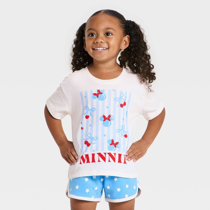 Toddler Girls' 2pc Disney Minnie Mouse Americana T-Shirt and Shorts Set - Blue/Red 3T