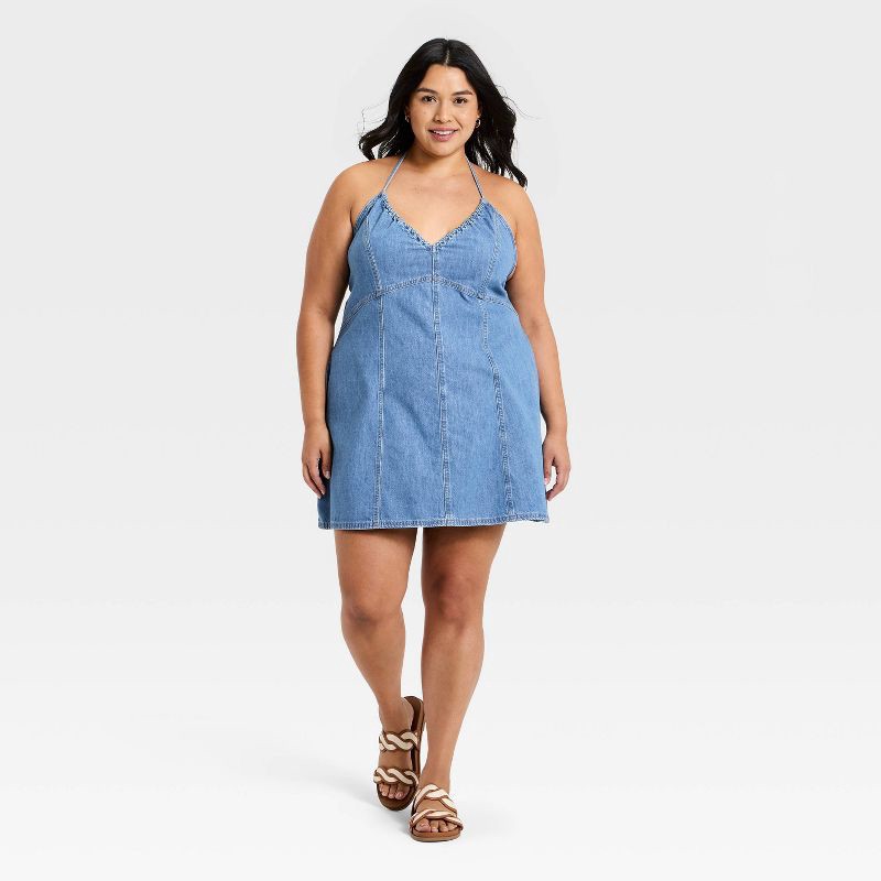 Women's Mini Halter Denim Dress - Universal Thread™ Medium Wash XXL