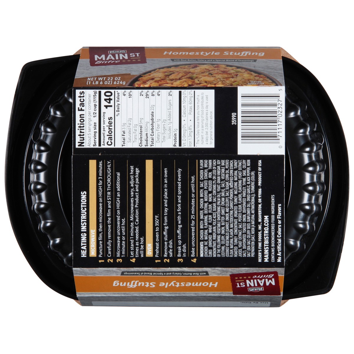 Make dinner memorable with the made-from-scratch taste of Main St Bistro baked Homestyle stuffing. This delicious fully baked side dish is ready in minutes so it pairs quickly and easily with your fav…