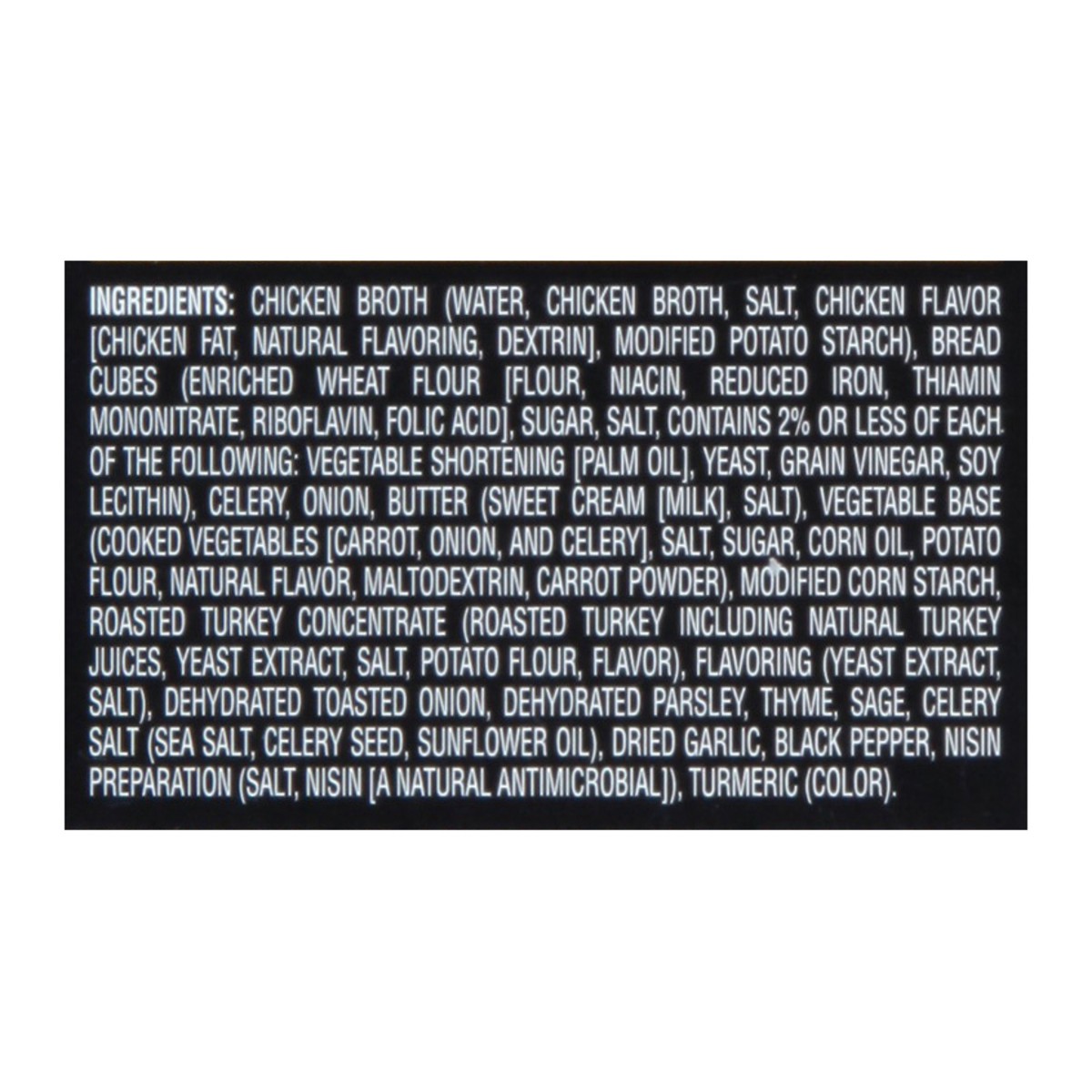 Chicken Broth (Water, Chicken Broth, Salt, Chicken Flavor [Chicken Fat, Natural Flavoring, Dextrin], Modified Potato Starch), Bread Cubes (Enriched Wheat Flour (Flour, Niacin, Reduced Iron, Thiamin Mo…