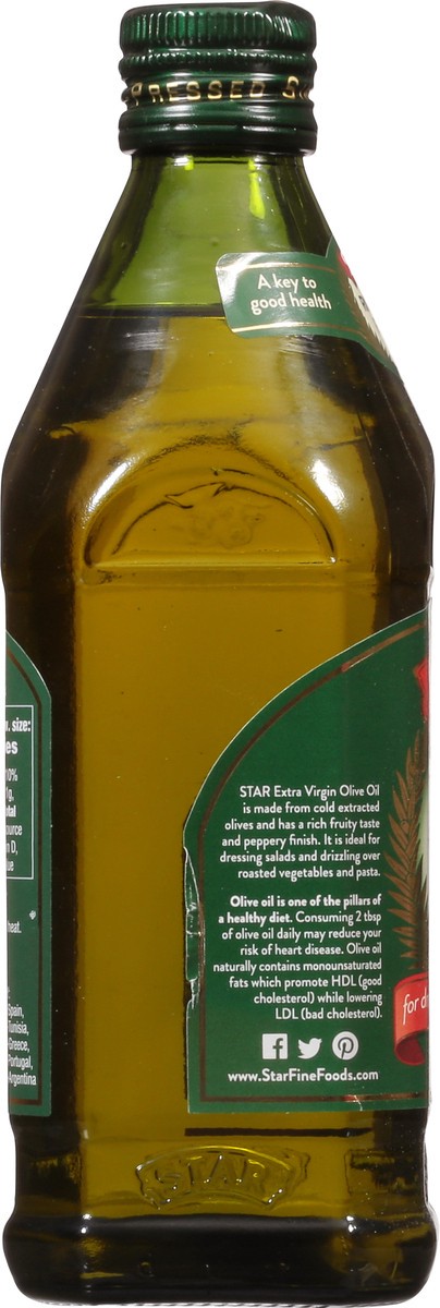 Since 1898. Imported since 1898. A key to a good health. Star extra virgin oil is made from cold extracted olives and has a fruity rich taste and peppery finish. It is ideal for dressing salads and dr…