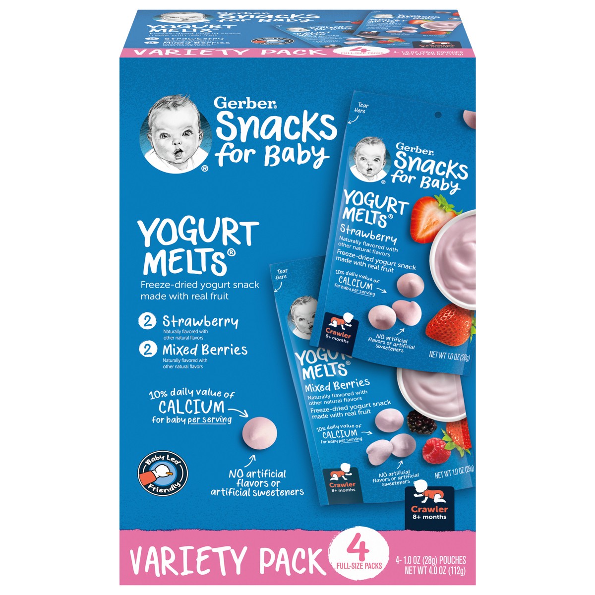 - One 4 ct Gerber Yogurt Melts Strawberry & Mixed Berry Yogurt Snack Variety Pack