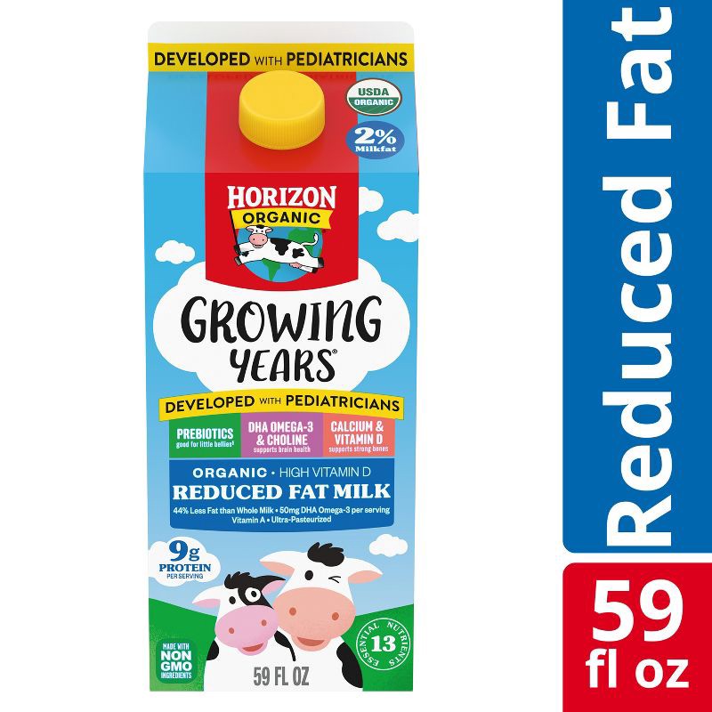 - ORGANIC DHA MILK FOR KIDS: One 59 fl oz milk carton of Horizon Organic Growing Years DHA Omega-3 2 Percent Milk contains nutrients growing kids need