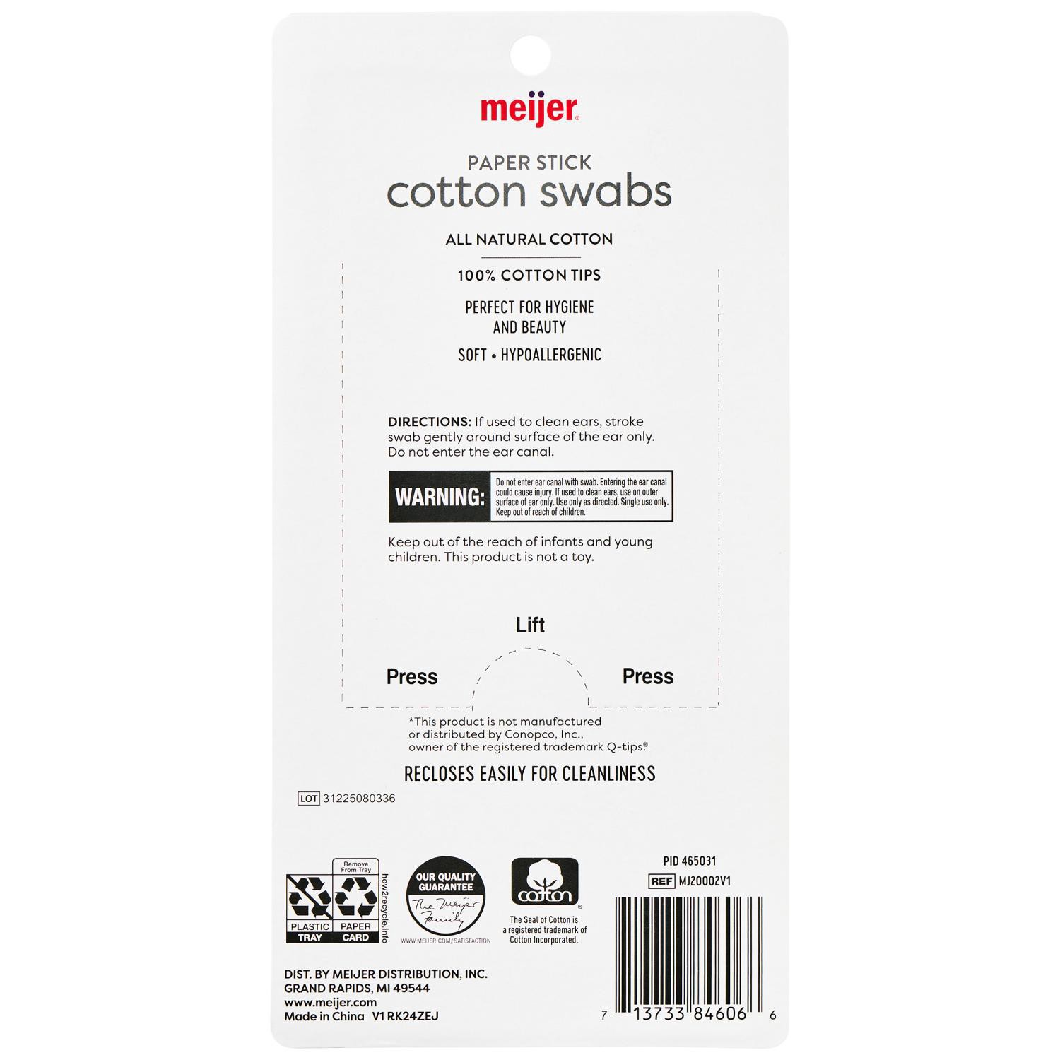 Meijer's Paper Cotton Swabs are all-natural, hypoallergenic, and perfect for both hygiene and beauty needs. Soft and gentle, they are ideal for cleaning the outer surface of the ear or applying makeup…