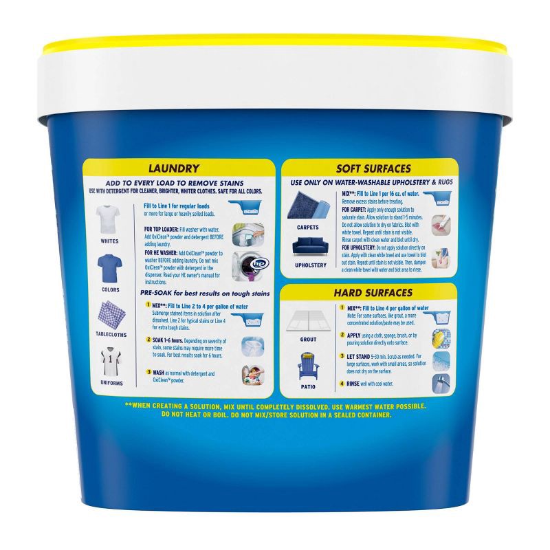 - One 5 lb container of OxiClean Versatile Stain Remover Powder with over 101 uses for laundry and around the home