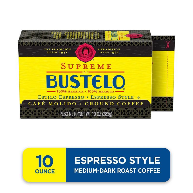 - Contains one (1) 10-oz. brick of Supreme by Bustelo espresso style coffee