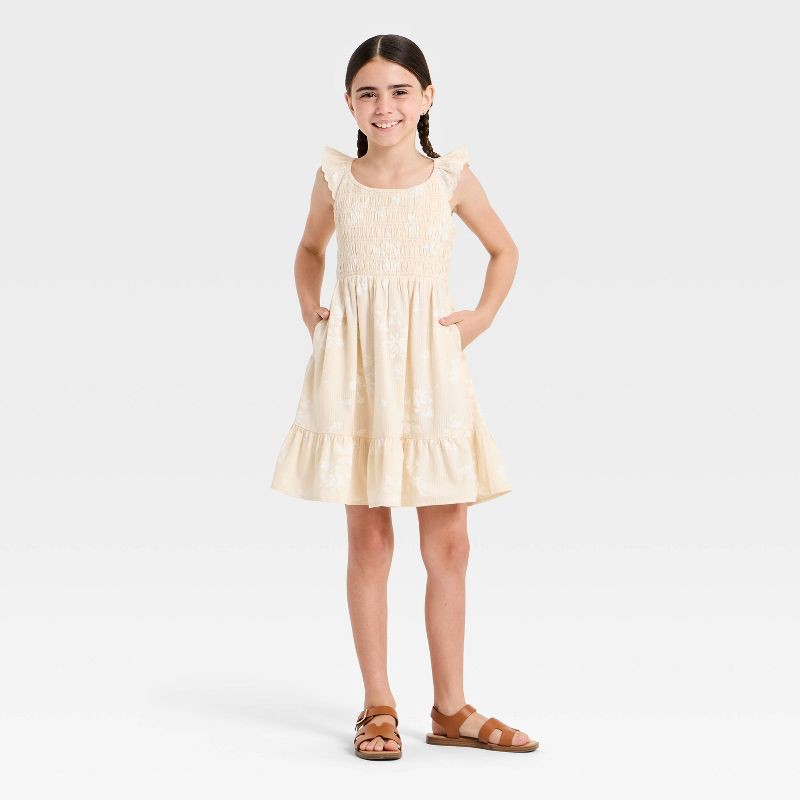 Girls' Woven Floral Printed A-Line Dress - Cat & Jack™ Cream M