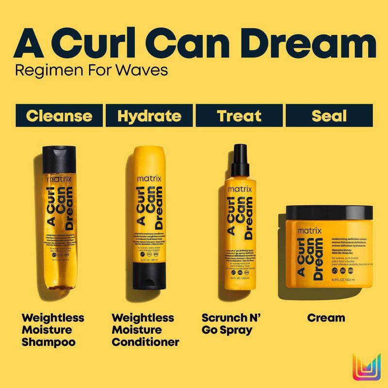 Matrix A Curl Can Dream Weightless Moisture Conditioner is specifically designed for waves. Infused with manuka honey extract and rose water, this conditioner provides wave definition without weigh do…