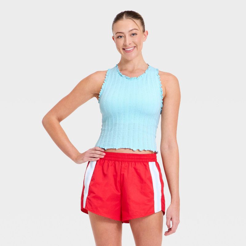 Women's Textured Ribbed Seamless Support Tank Top - JoyLab™ Light Blue XL