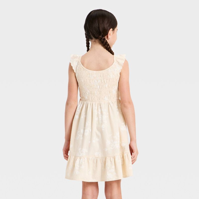 Girls' Woven Floral Printed A-Line Dress - Cat & Jack™ Cream S