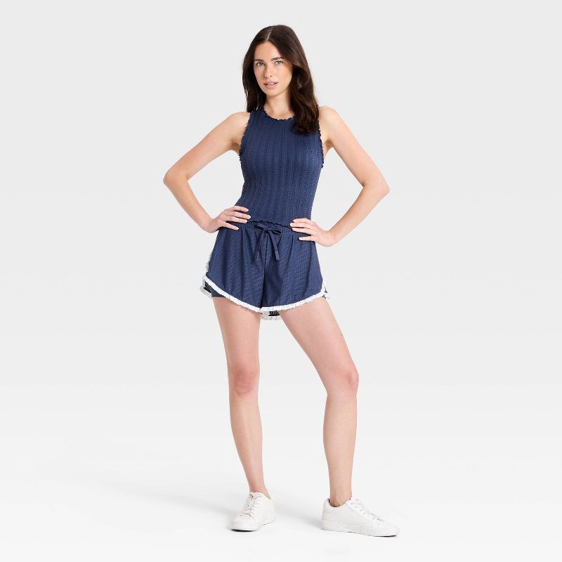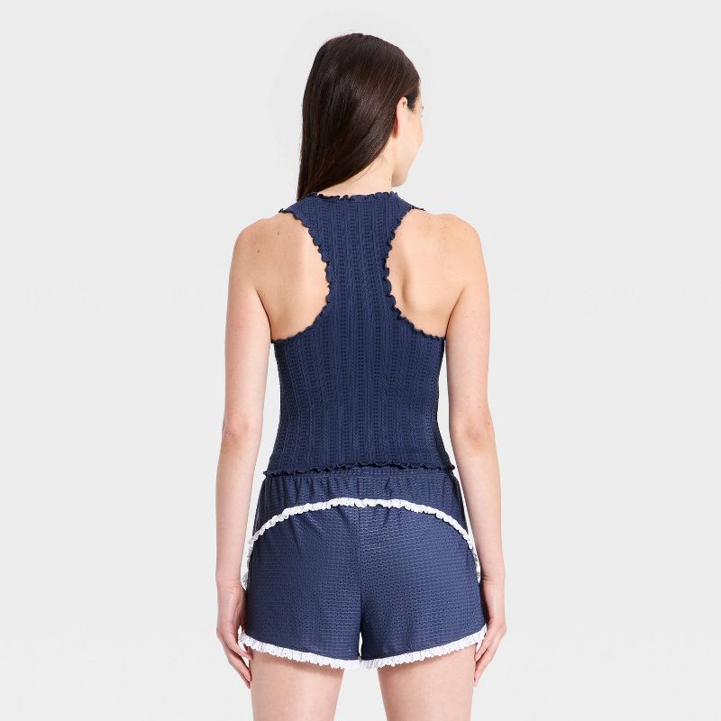 Women's Textured Ribbed Seamless Support Tank Top - JoyLab™ Dark Blue XXS