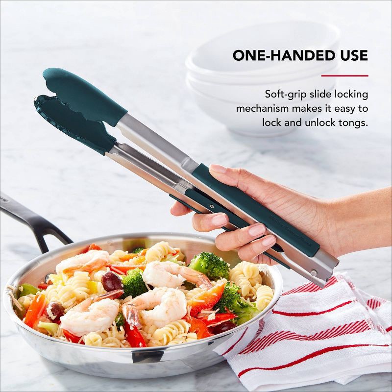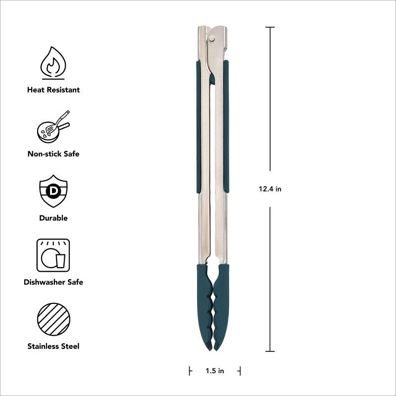 Built from durable 430 stainless steel with heat-resistant silicone tips (safe up to 500°F), these sturdy tongs are ideal for all cookware, including nonstick. A slide-lock mechanism allows compact st…