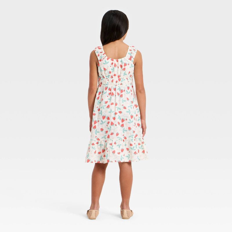 Girls' Woven Strawberry Midi A-Line Dress - Cat & Jack™ Cream M
