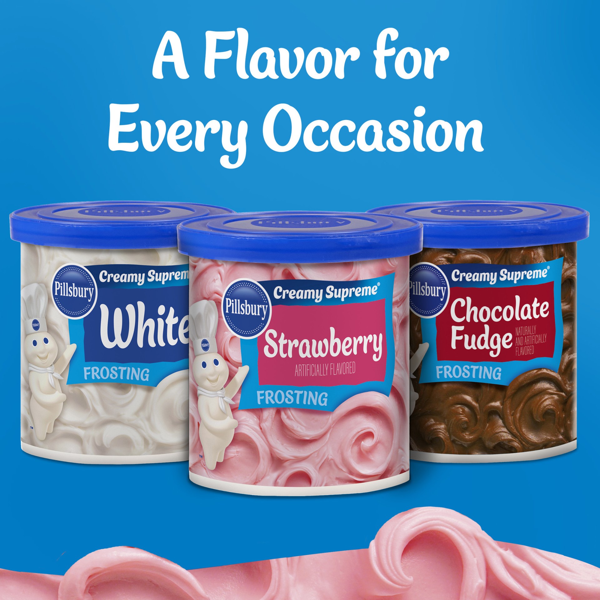 Take any treat from delicious to delightful with Pillsbury Creamy Supreme Strawberry Frosting. Thick, rich and spreadable, Pillsbury Creamy Supreme Frosting is ideal for cakes, cupcakes, cookies, brow…