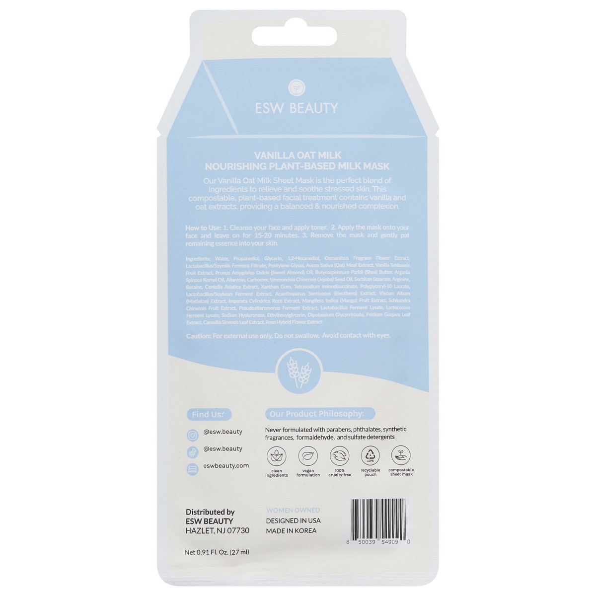 ESW Beauty Vanilla Oat Milk Nourishing Milk Mask 0.91 fl oz