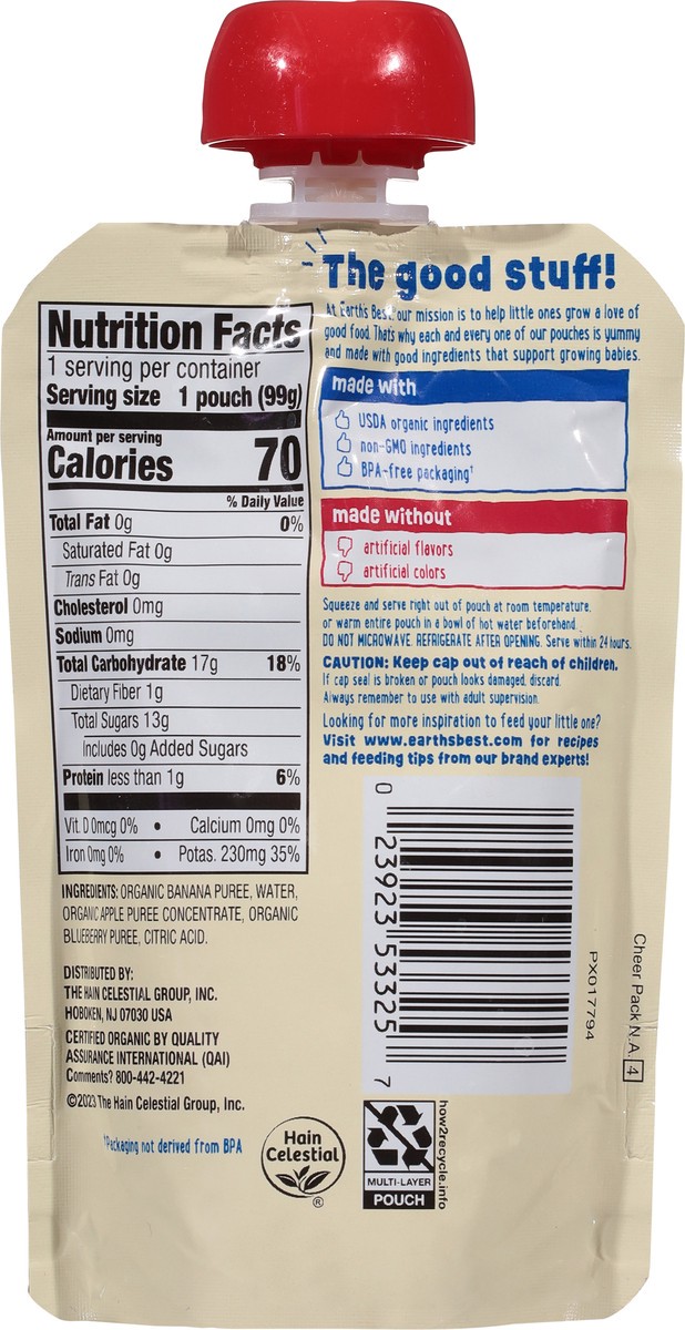 Earths Best Organic 2nd Foods Banana Blueberry Puree Pouch - 3.5 Oz