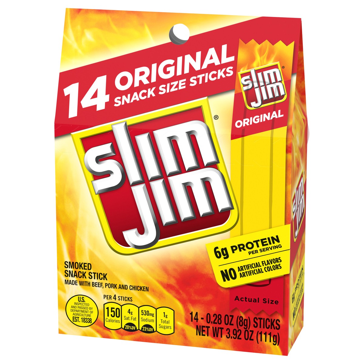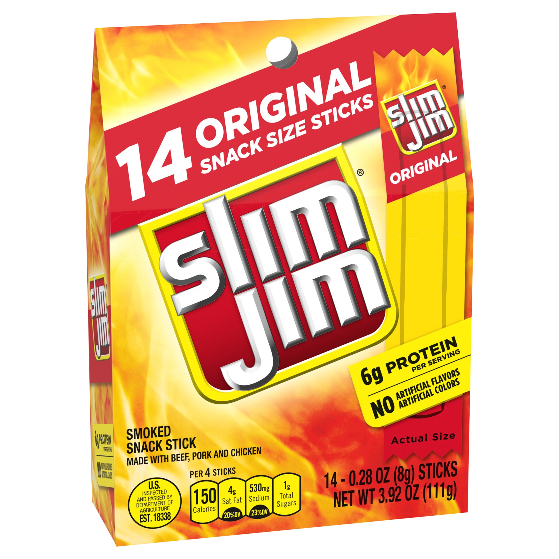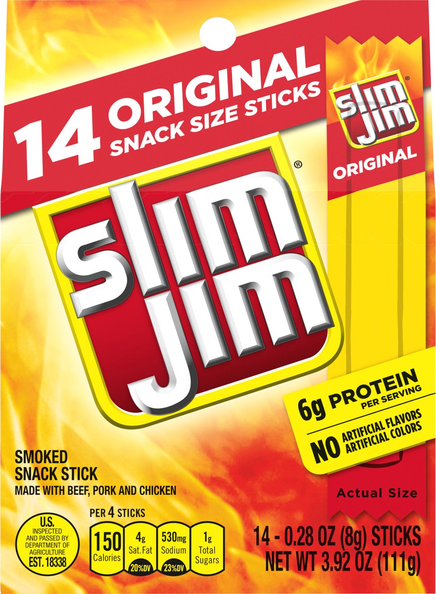 Slim Jim Original Flavor Snack Size Smoked Meat Sticks - 14-0.28 Oz