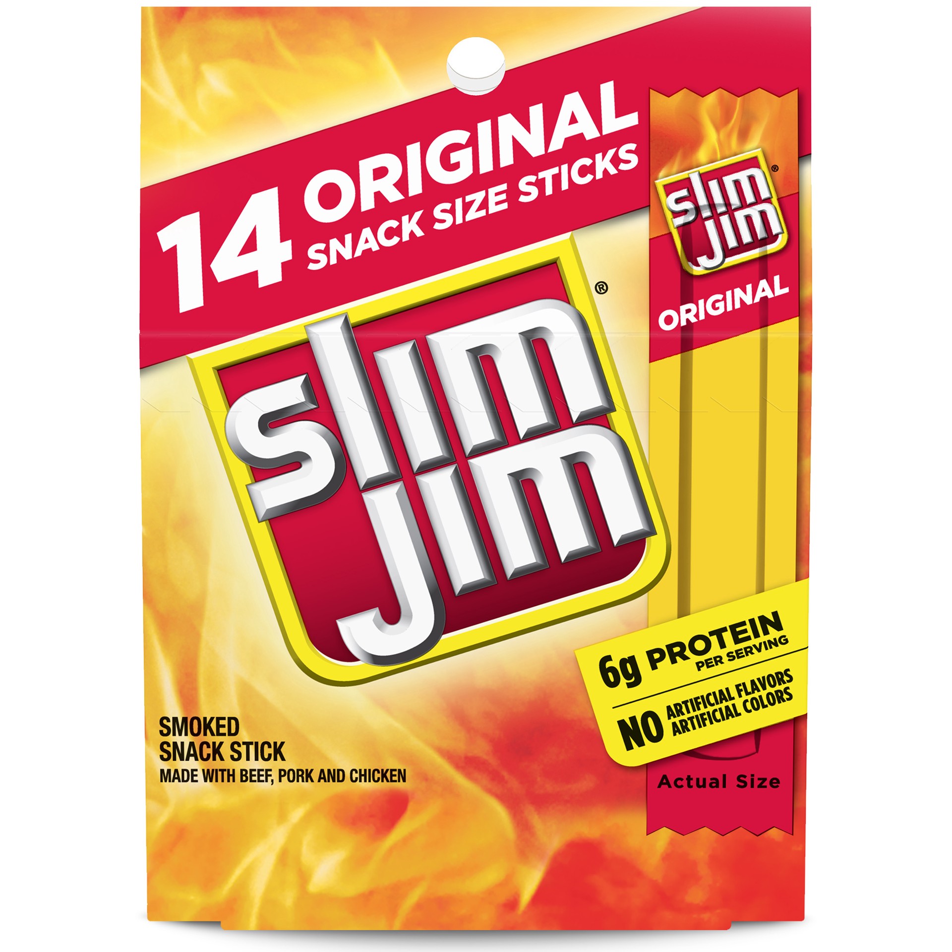- One 14-count box of 0.28 oz. Slim Jim Original Smoked Snack Sized Sticks