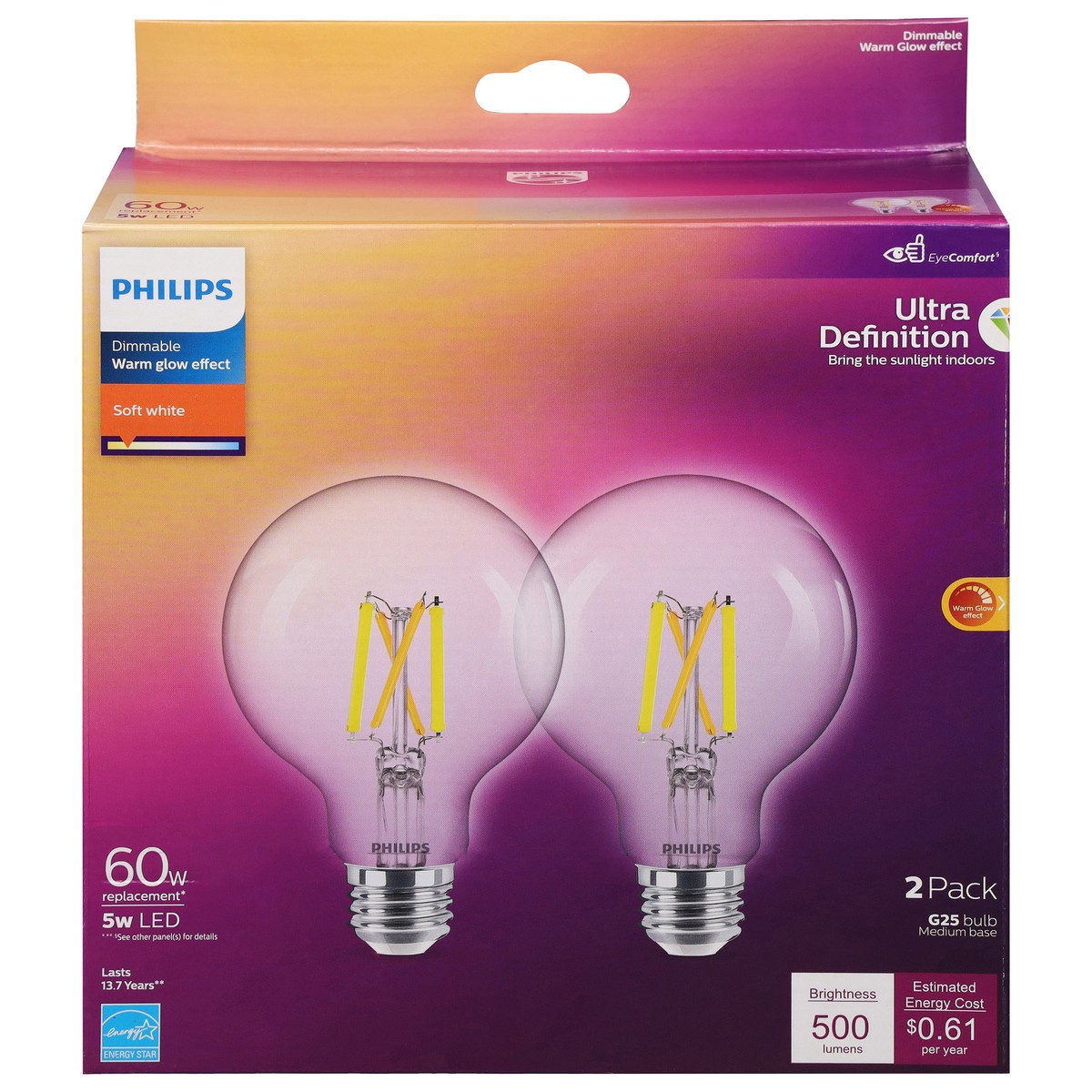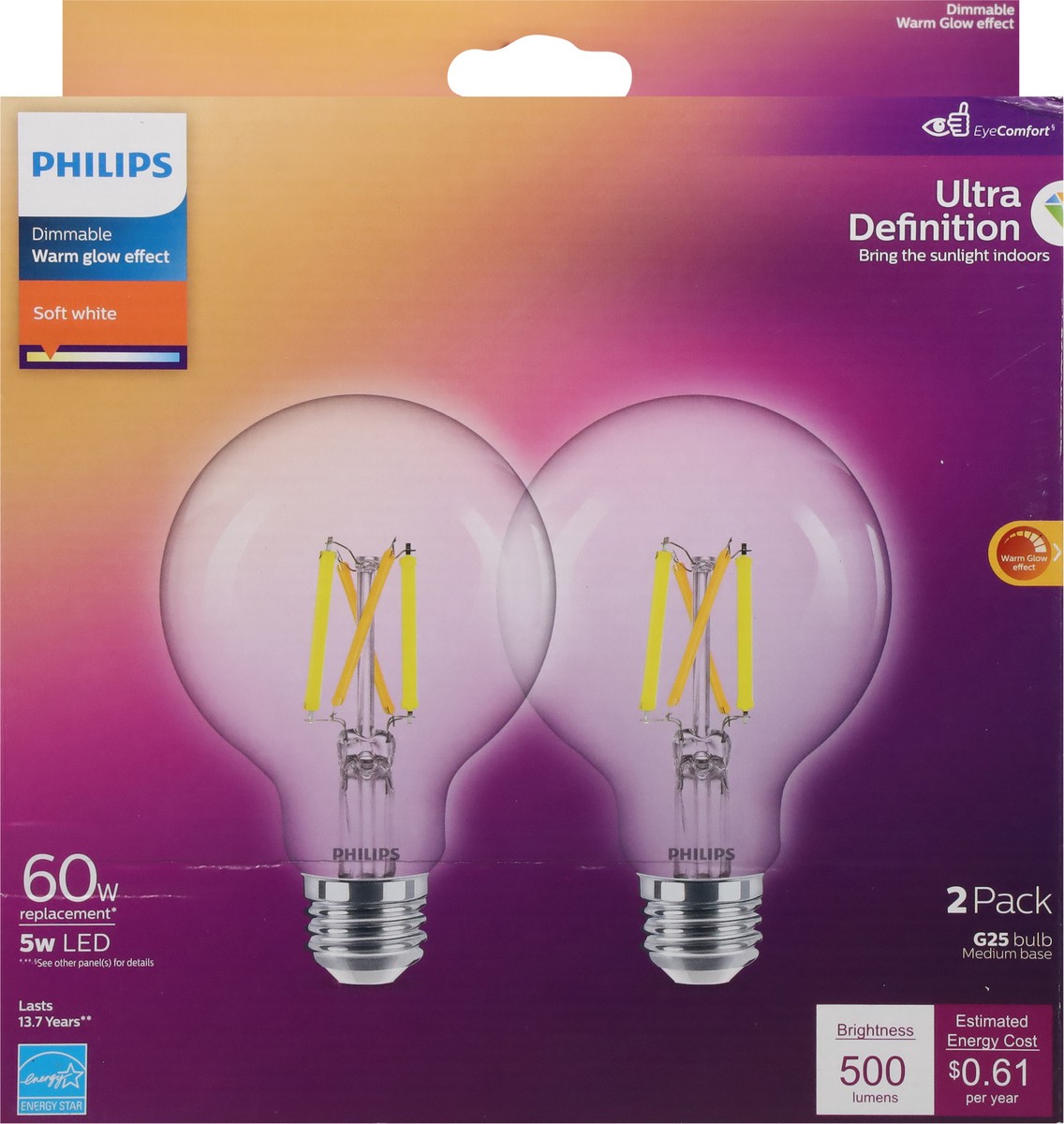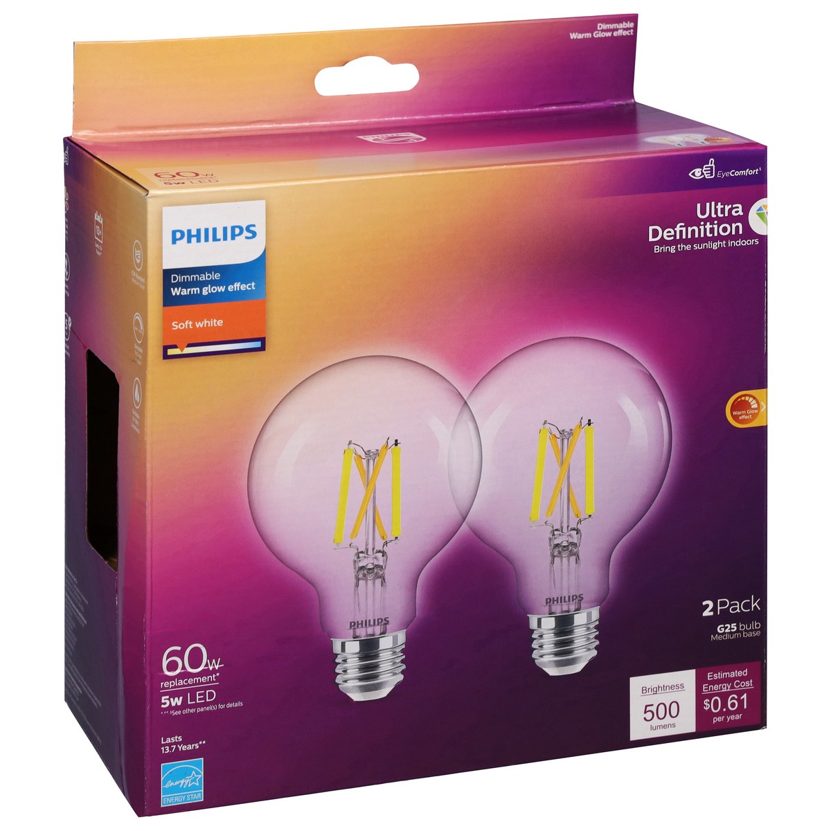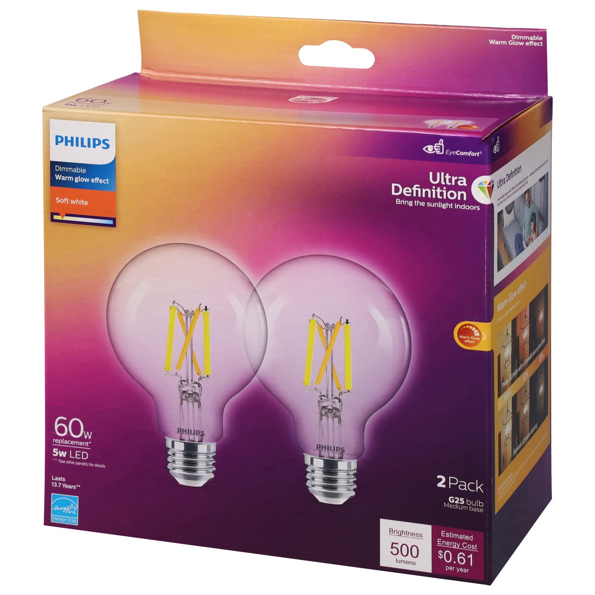 Philips 5 Watts Soft White Warm Glow Effect Dimmable LED Light Bulbs 2 ea