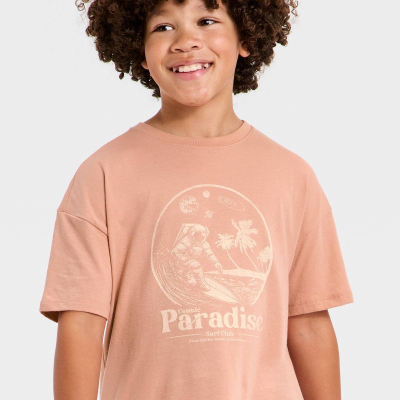 Boys' Short Sleeve Astronaut Paradise Oversized Graphic T-Shirt - Cat & Jack™ Clay Pink XL