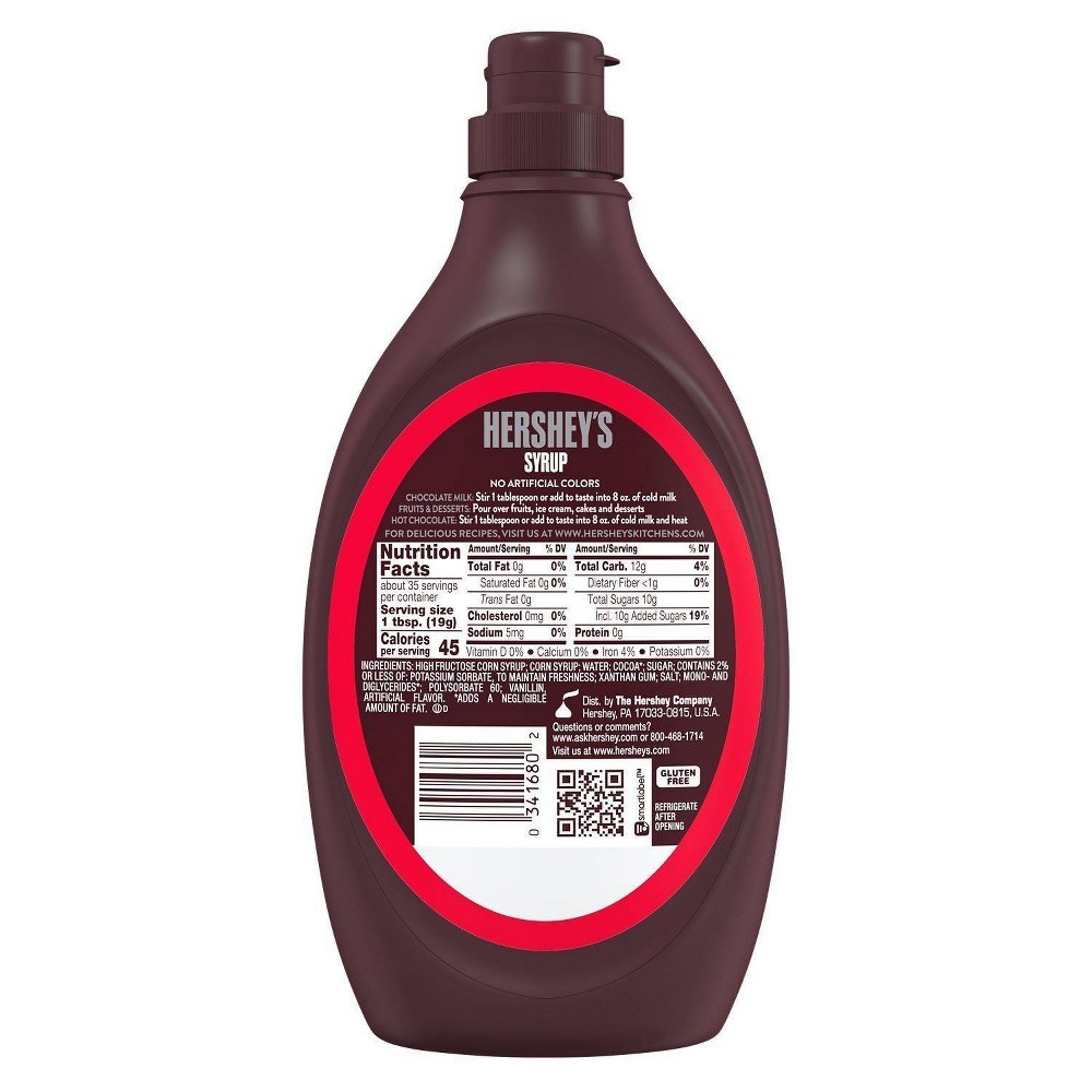 Genuine chocolate flavor packed in the classic bottle of HERSHEY'S Chocolate Syrup can do no wrong. Want to add it to your milk, hot cocoa and coffee, or drizzle it over your brownies and cakes, or us…