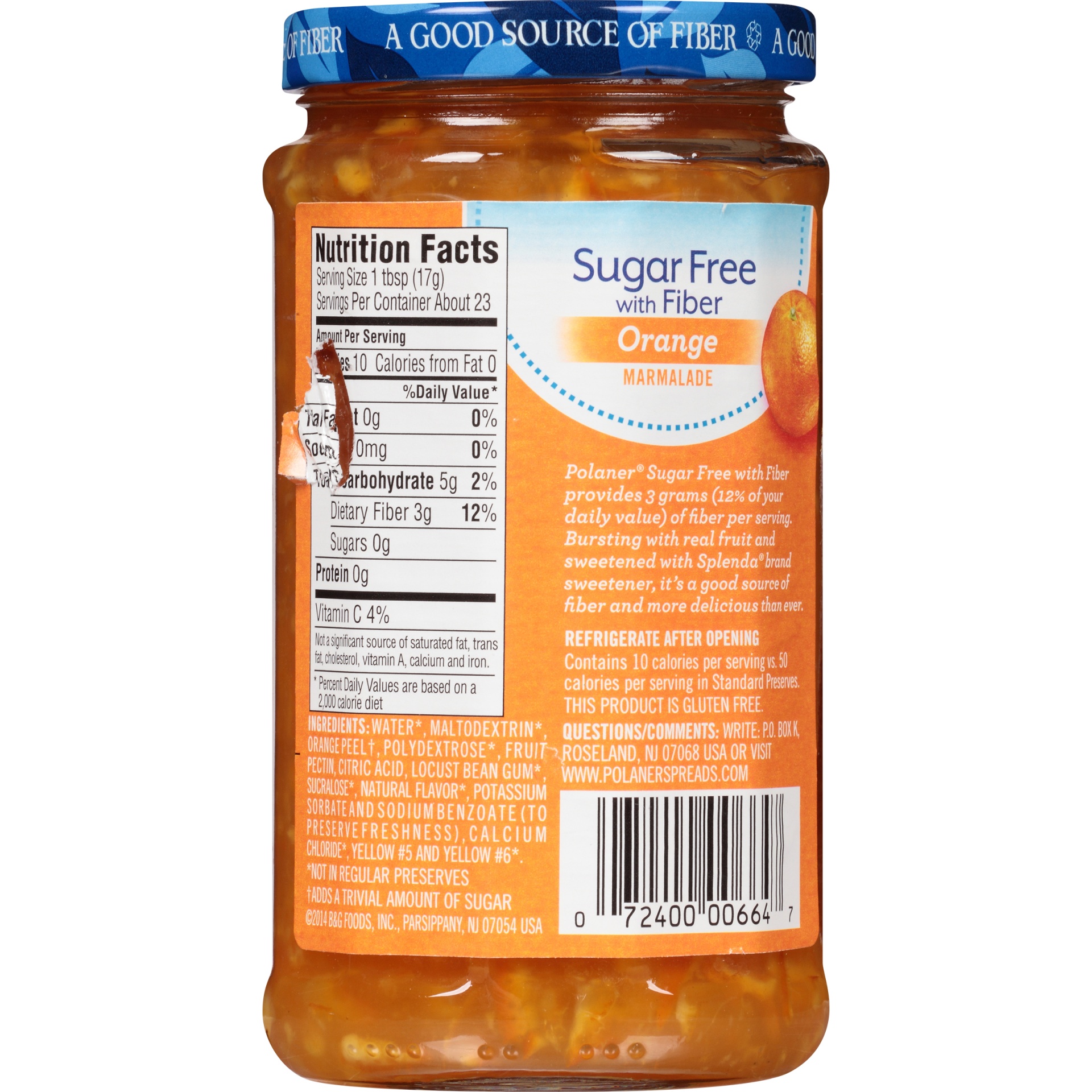 Polaner Sugar Free with Fiber Orange Marmalade 13.5 oz
