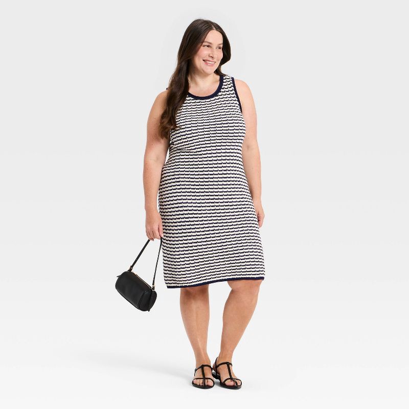 Women's Crochet Mini Sweater Dress - A New Day™ Navy Blue Striped XXL