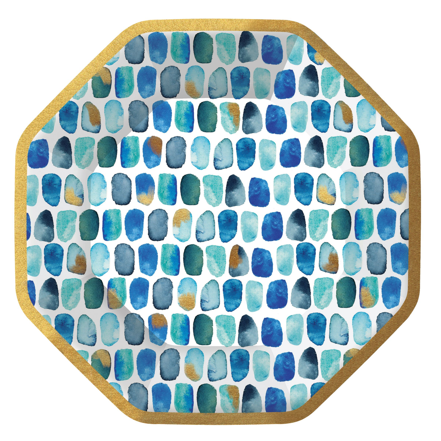 Elevate your dining experience with these Coastal Sea Glass Dinner Plates. Featuring a serene sea glass design with luxurious gold foil accents and a unique octagon die cut, these plates add a touch o…
