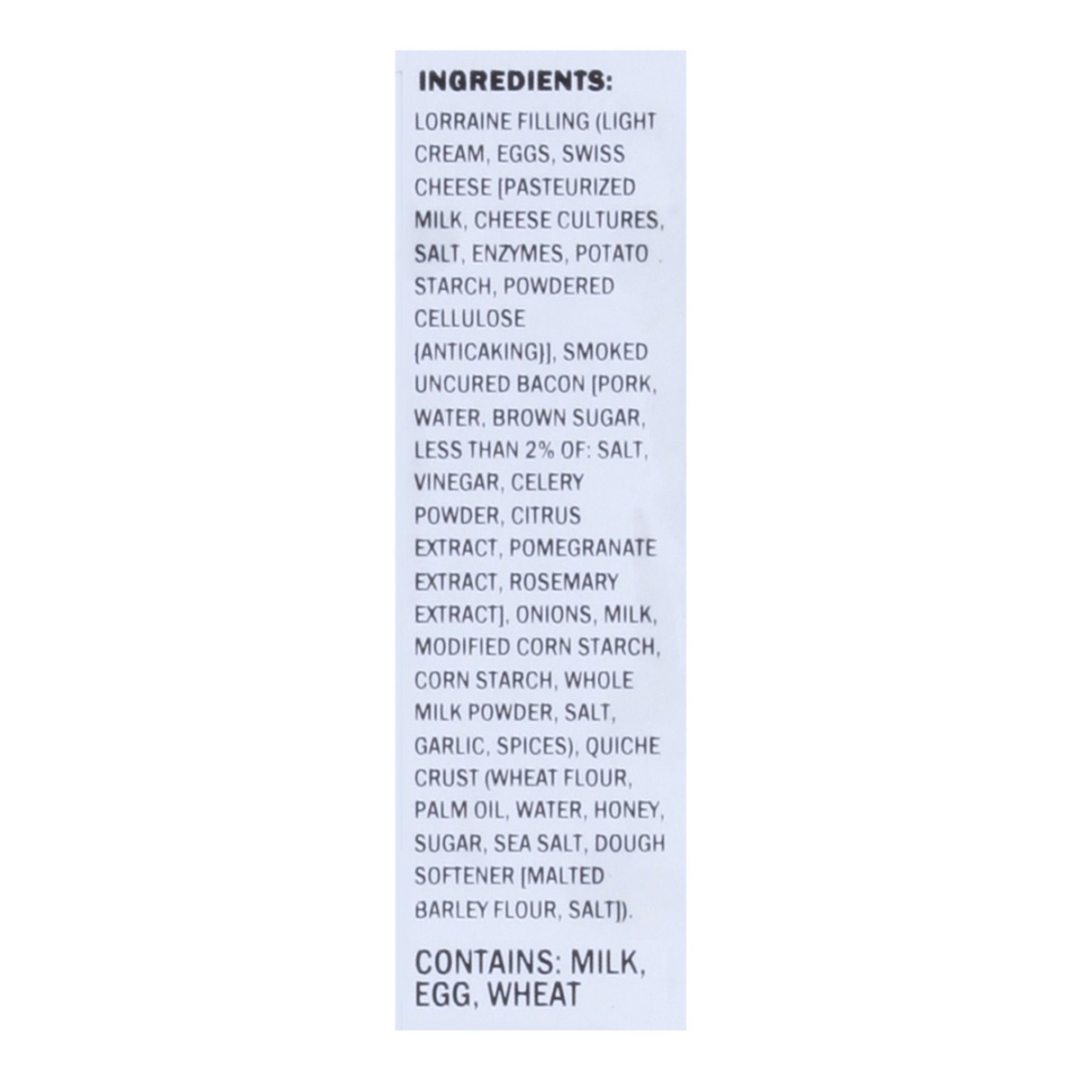 Lorraine Filling (Light Cream, Eggs, Swiss Cheese (Pasteurized Milk, Cheese Cultures Salt, Enzymes, Potato Starch, Powdered Cellulose [Anticaking)], Smoked Uncured Bacon (Pork, Water, Brown Sugar, Les…