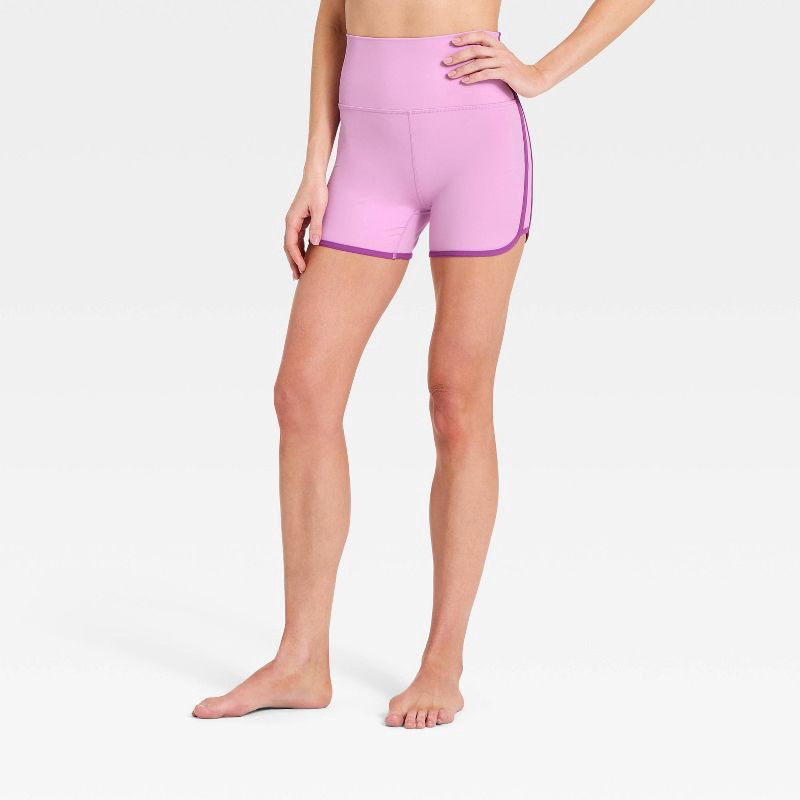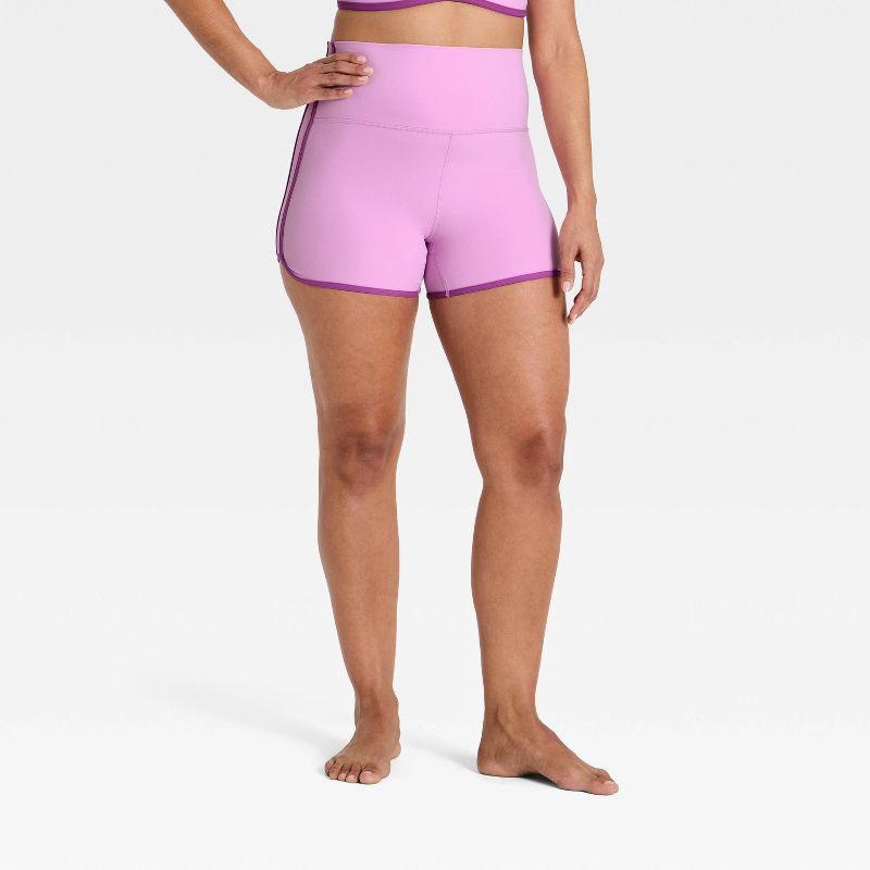 Women's Everyday Soft Ulta High-Rise Retro Contrast Hem Bike Shorts 3" - All In Motion™ Light Violet XS