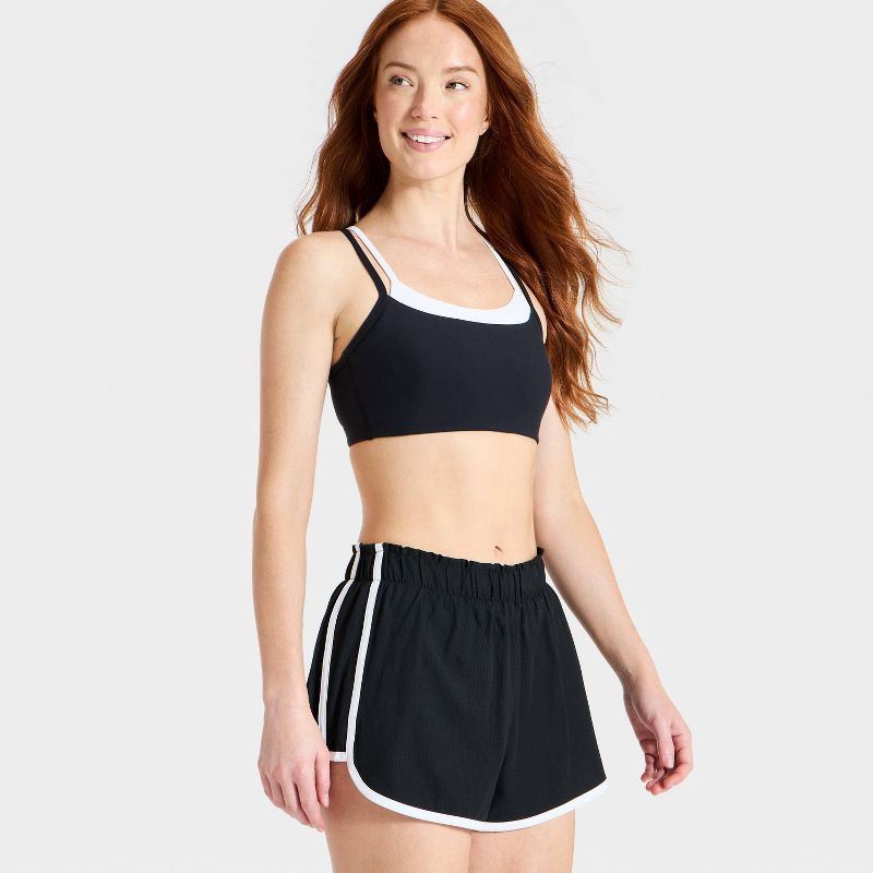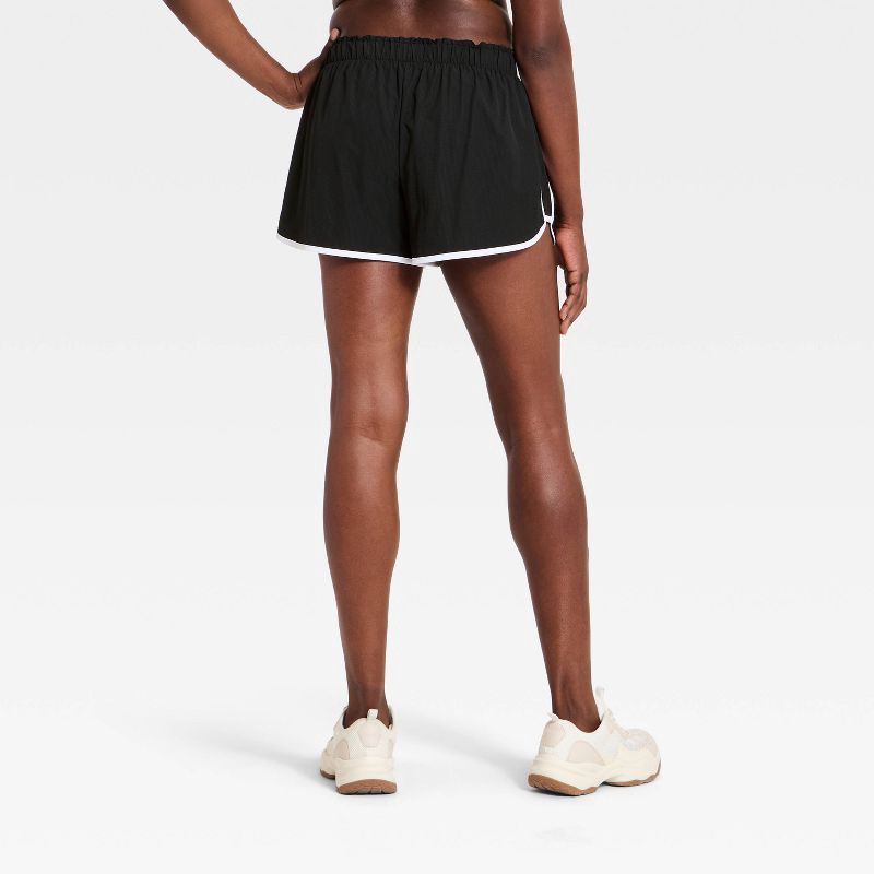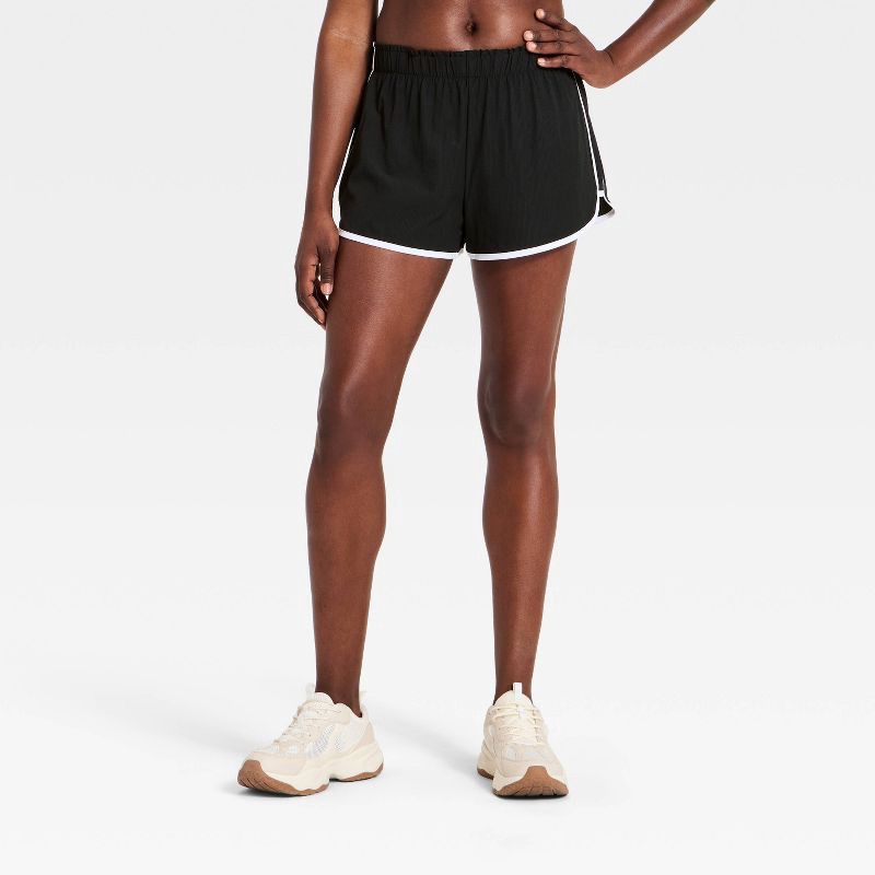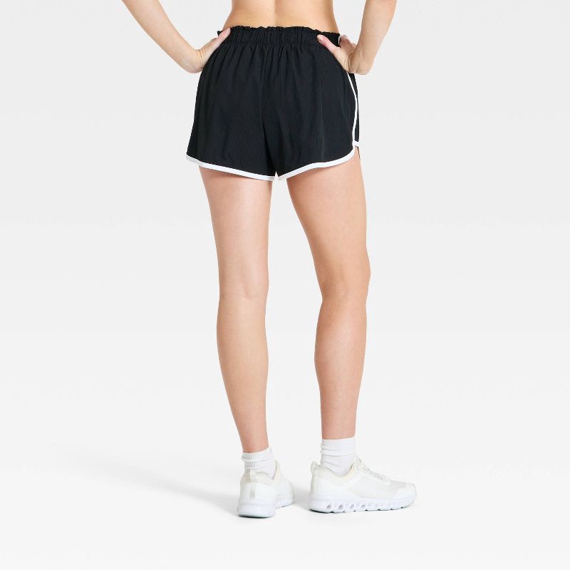 Women's Mid-Rise Textured Woven Run Shorts 3" - All In Motion™ Black XS