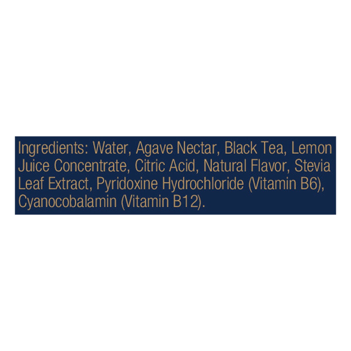 Water, Agave Nectar, Black Tea, Lemon Juice Concentrate, Citric Acid, Natural Flavor, Stevia Leaf Extract, Pyridoxine Hydrochloride (Vitamin B6), Cyanocobalamin (Vitamin B12).