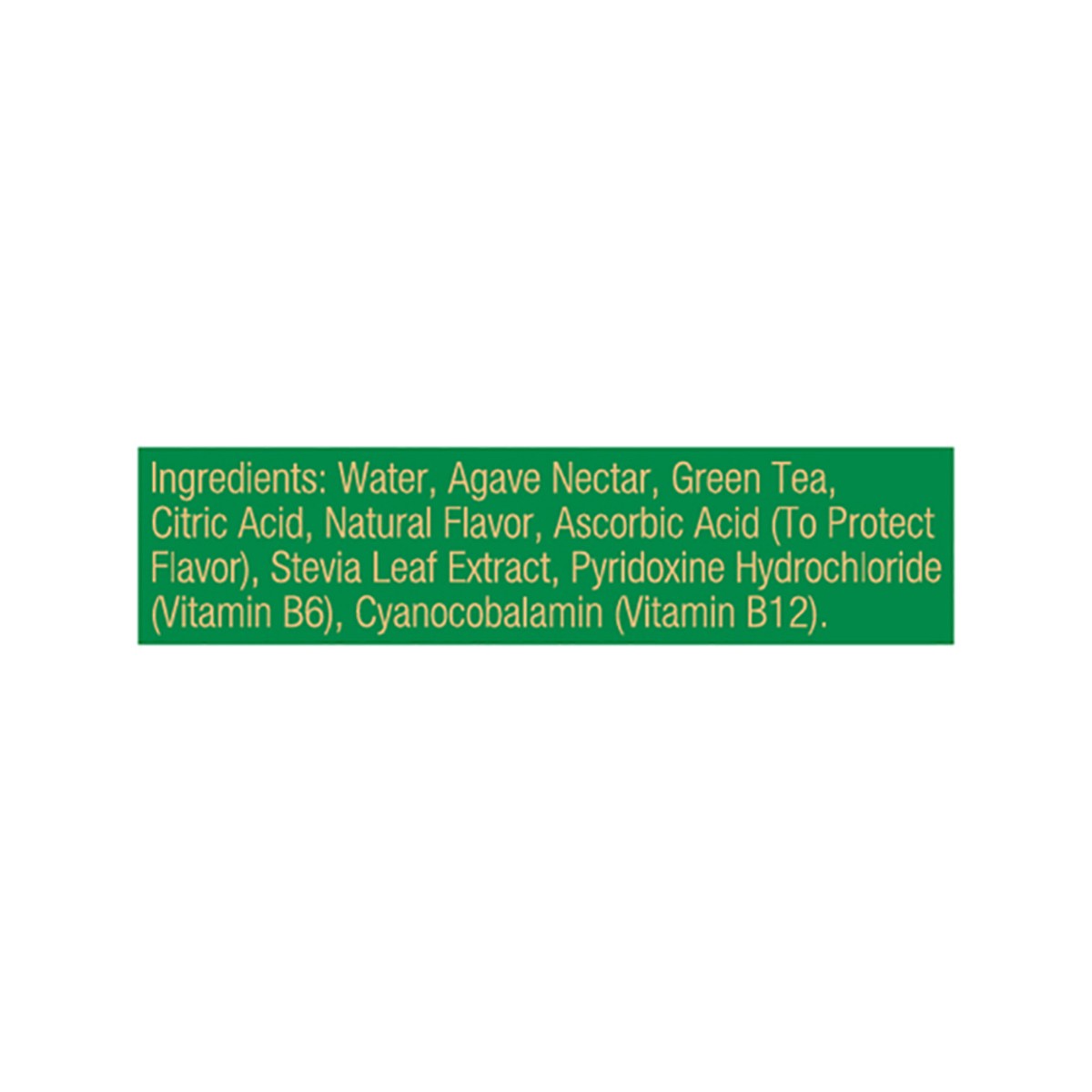 Water, Agave Nectar, Green Tea, Citric Acid, Natural Flavor, Ascorbic Acid (to Protect Flavor), Stevia Leaf Extract, Pyridoxine Hydrochloride (Vitamin B6), Cyanocobalamin (Vitamin B12).