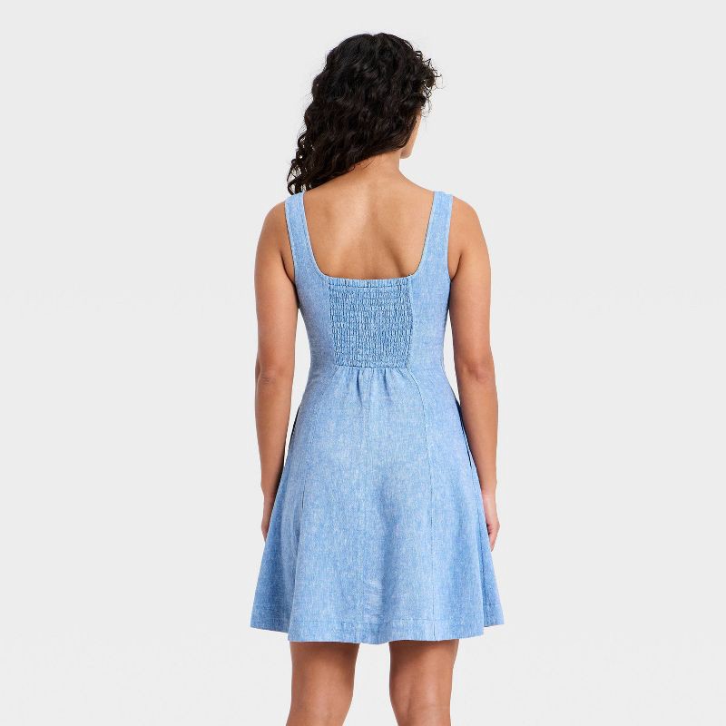 Women's Sleeveless Linen Mini A-Line Dress - Universal Thread™ Chambray L