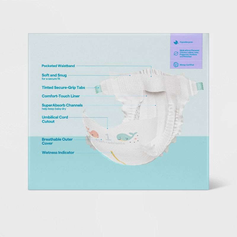 Disposable Diapers - Size 1 - 168ct - up&up™: Wetness Indicator, Hypoallergenic, Latex-Free, Absorption Channels