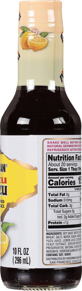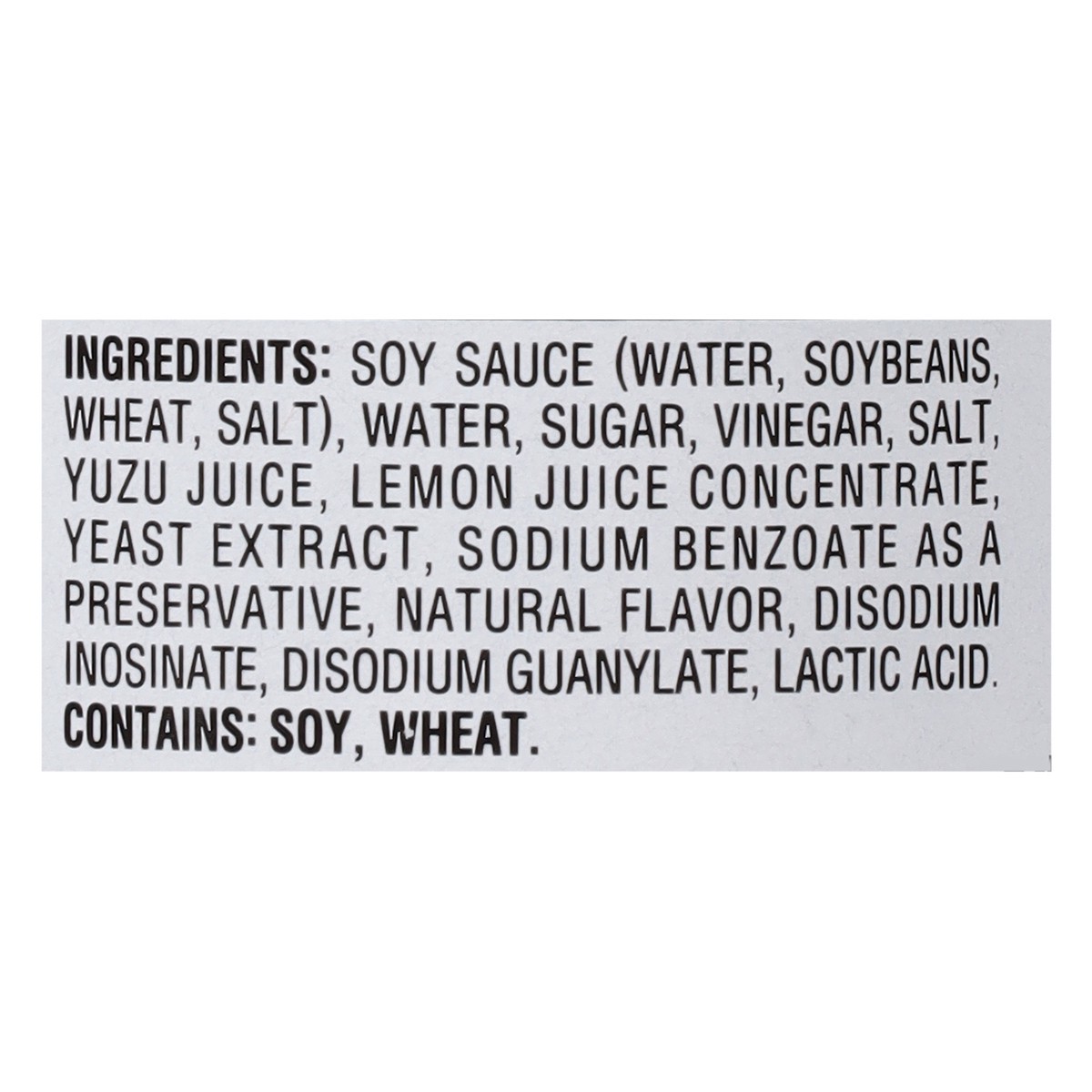 Soy Sauce (Water, Soybeans, Wheat, Salt), Water, Sugar, Vinegar, Salt, Yuzu Juice, Lemon Juice Concentrate, Yeast Extract, Sodium Benzoate as a Preservative, Natural Flavor, Disodium Inosinate, Disodi…