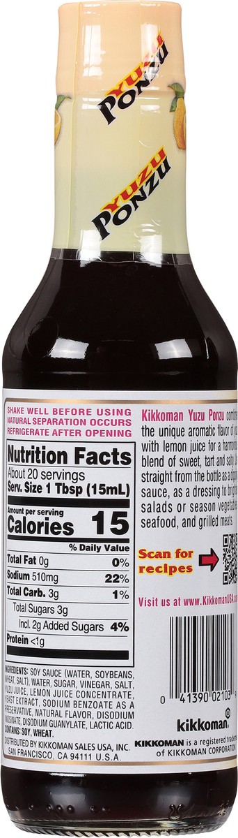 Use Kikkoman Yuzu Ponzu as a dipping sauce, salad dressing or an ingredient in cooking. It's bursting with umami and delicately balanced with a sweet, salty and tangy flavor.