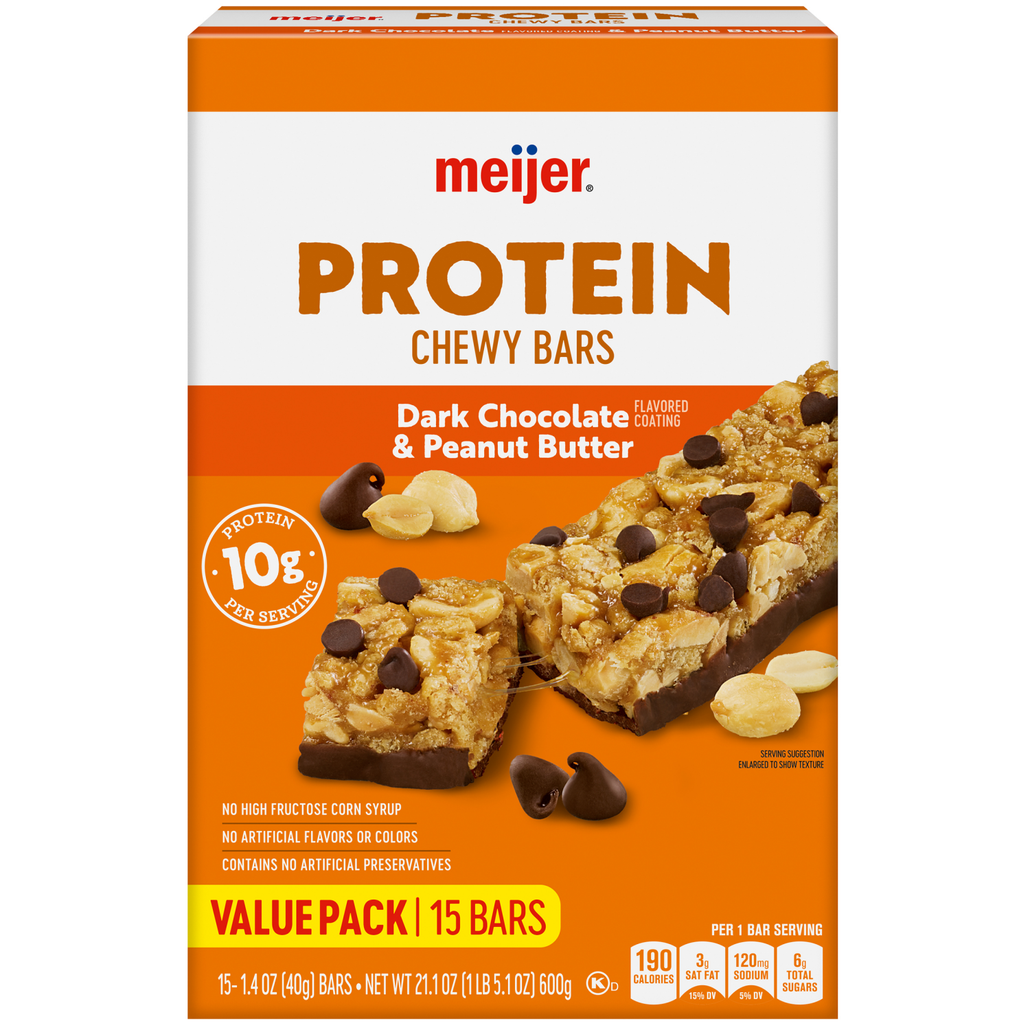Indulge in the rich flavors of Meijer's Dark Chocolate and Peanut Butter Protein Chewy Bars. These bars, free from high fructose corn syrup, artificial flavors, colors, and preservatives, deliver a sa…