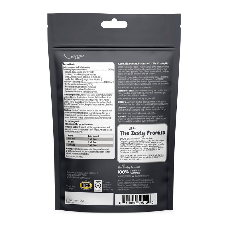 Zesty Paws Vet Strength Vegetable and Chicken Flavor Pre-Post Bites Dog Vitamins and Supplements - 60ct
