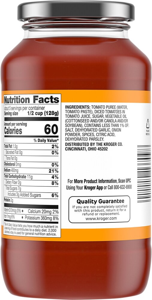 Tomato Puree, Tomatoes In Tomato Juice, Sugar, Vegetable Oil, Salt, Dehydrated Garlic, Onion Powder, Spices, Citric Acid, Dried Parsley