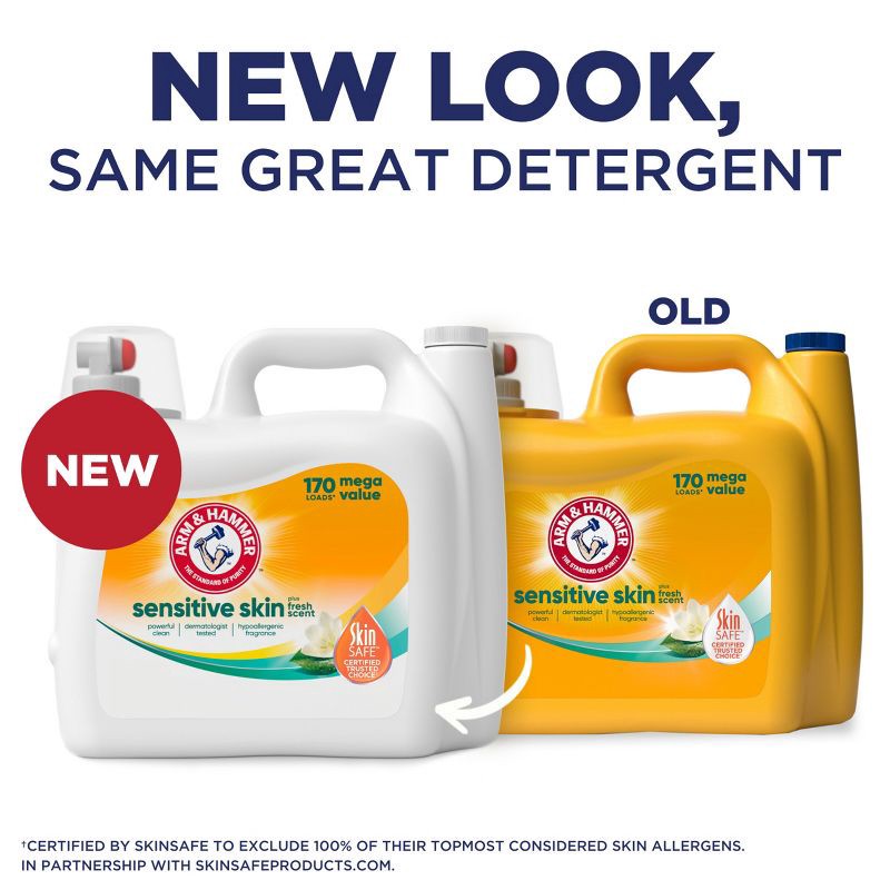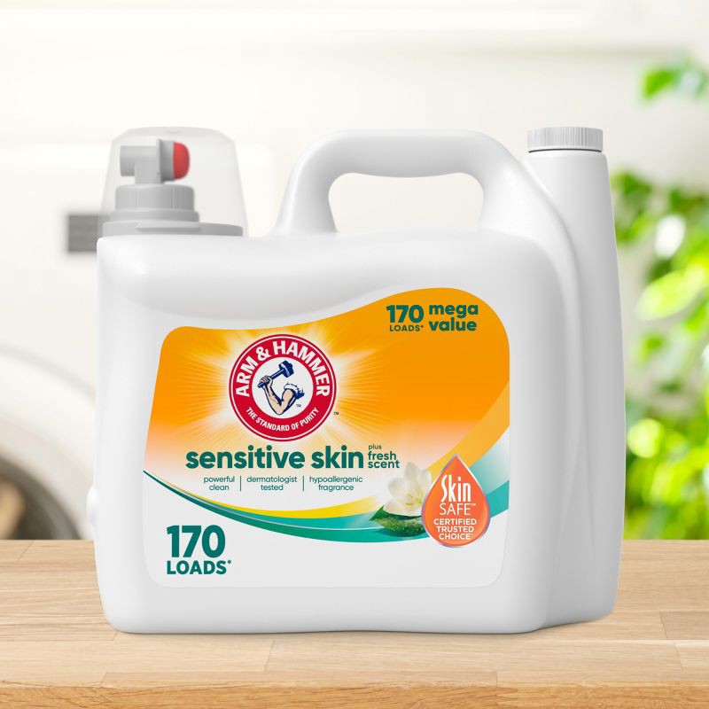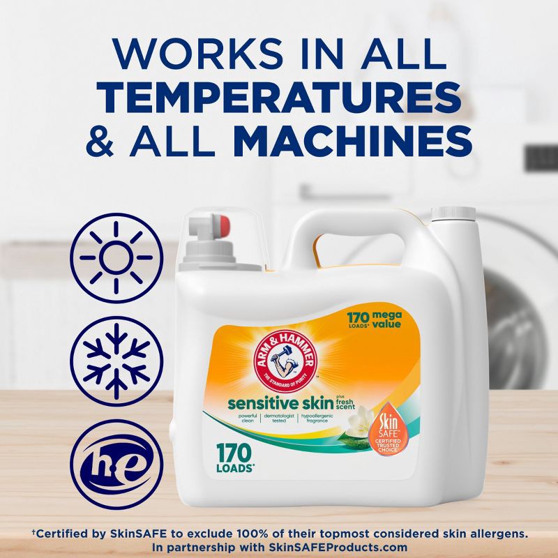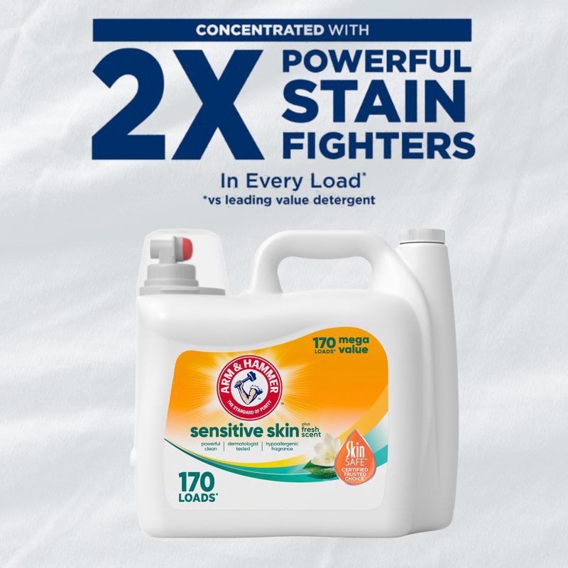 - One 170 fl oz bottle of ARM & HAMMER Sensitive Skin Laundry Detergent, Fresh Scent Liquid Laundry Detergent that cleans 170 medium loads when used as directed