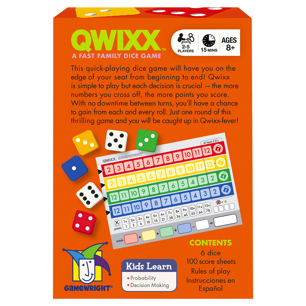 Gamewright Qwixx Age 8+ 2-5 Players Dice Rolling Game 1 ea