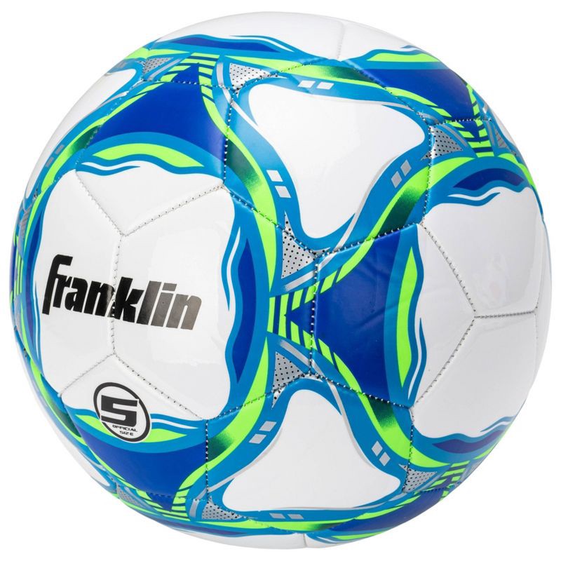 Franklin Sports 2025 Boys' Size 4 Competition Soccerball - White/Blue/Green: Butyl Bladder,
