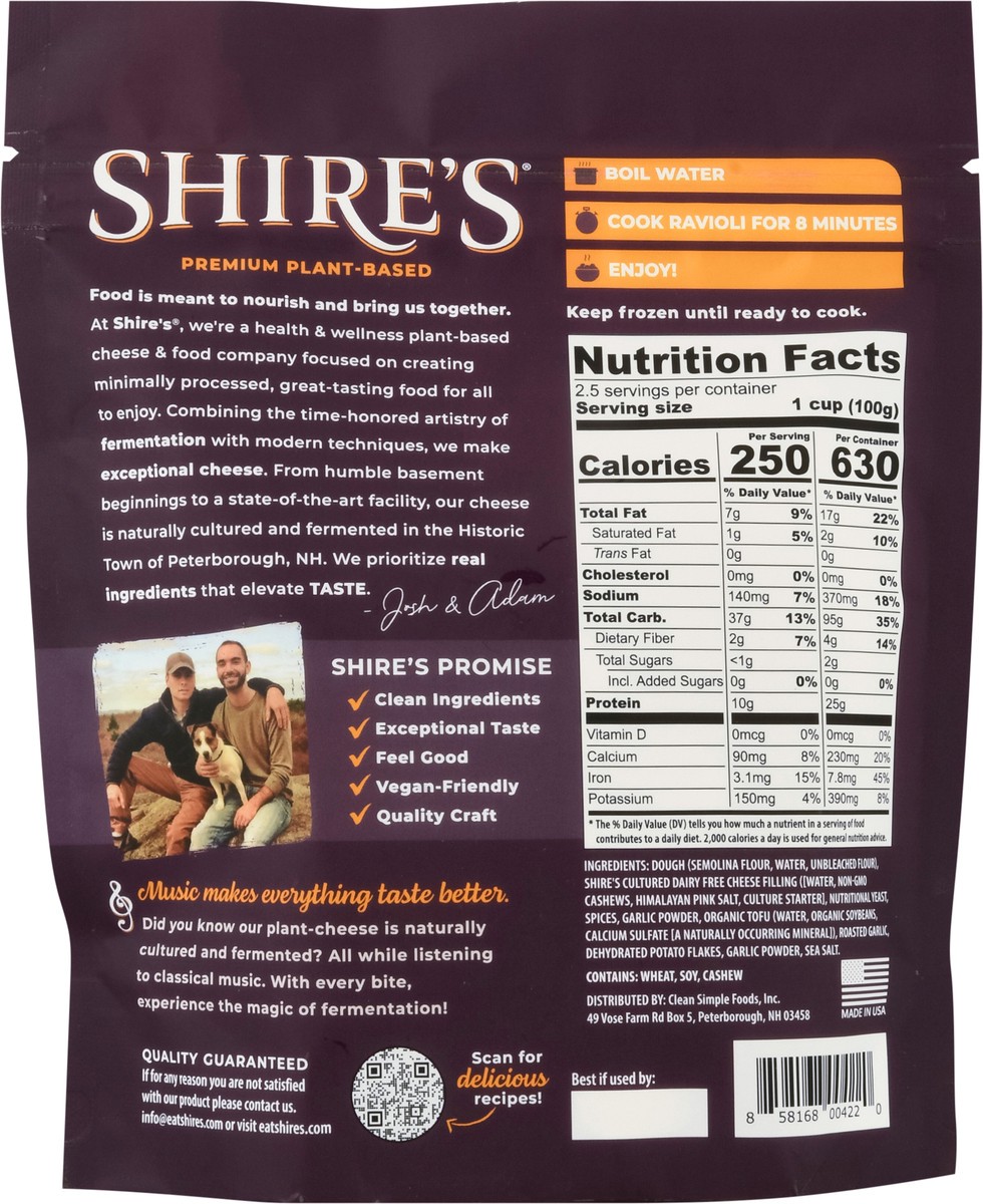 Shire's Premium Plant-Based Dairy Free Garlic/Cheese Ravioli Pasta Frozen