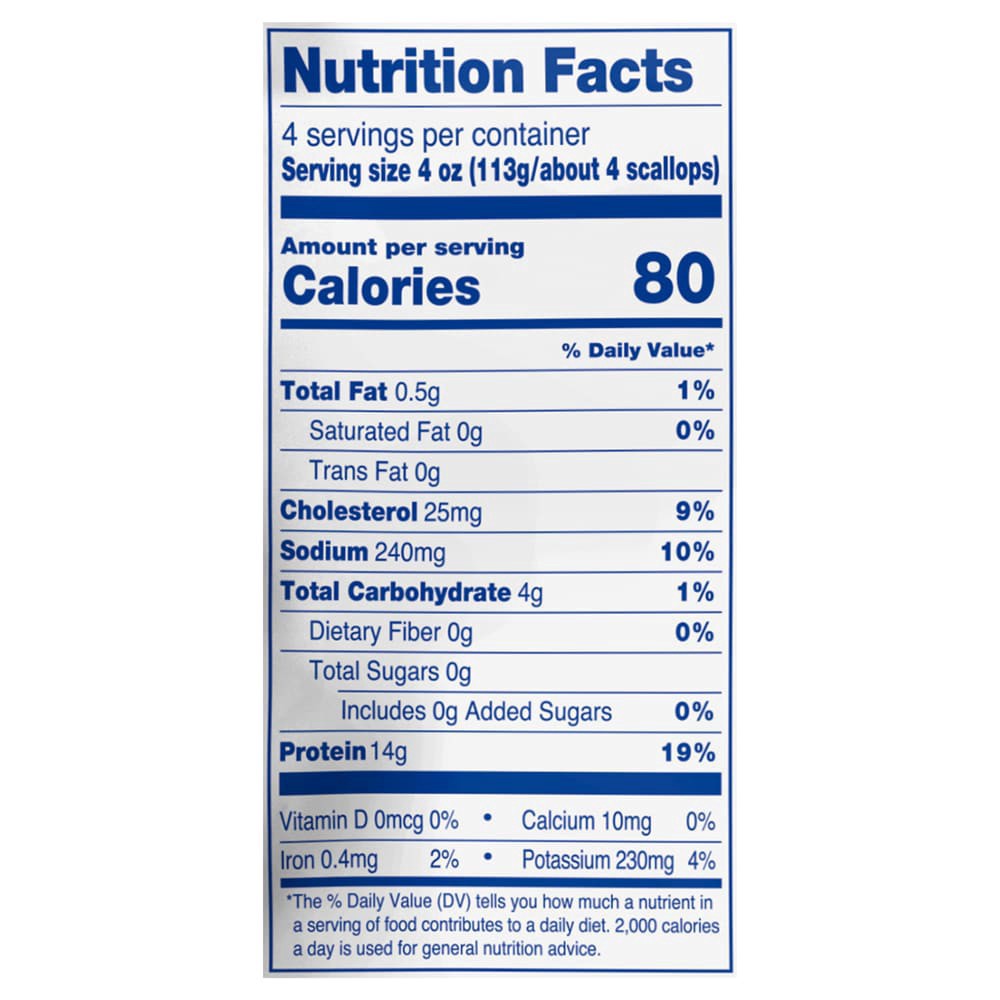 Sea Scallops, Water, Sodium Tripolyphosphate (to Retain Moisture).