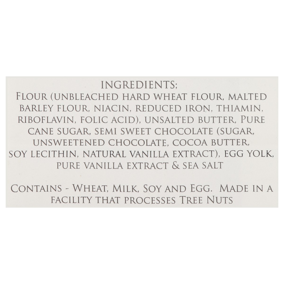 Flour (Unbleached Hard Wheat Flour, Malted Barley Flour, Niacin, Reduced Iron, Thiamin, Riboflavin, Folic Acid), Unsalted Butter, Pure Cane Sugar, Semi Sweet Chocolate (Sugar, Unsweetened Chocolate, C…